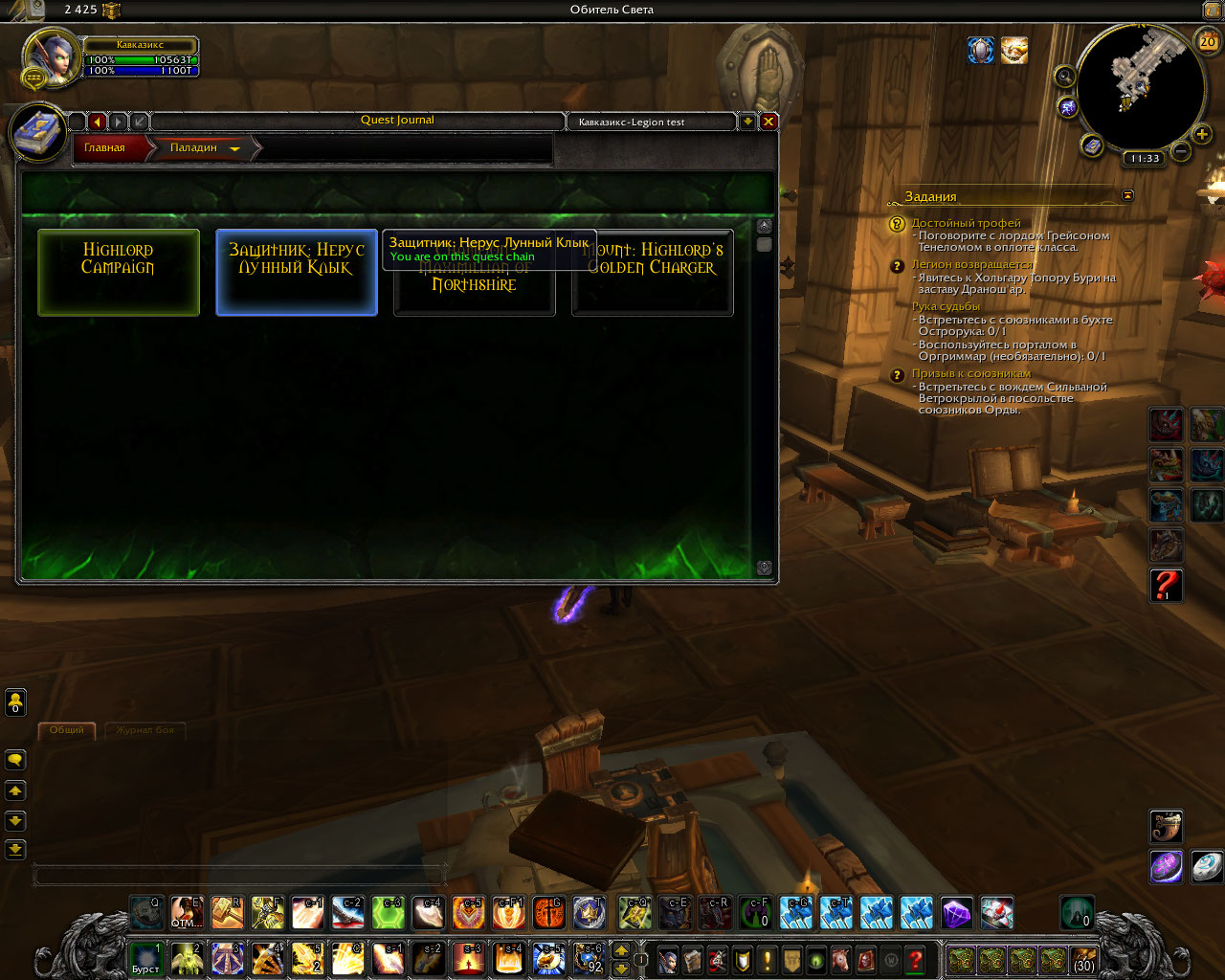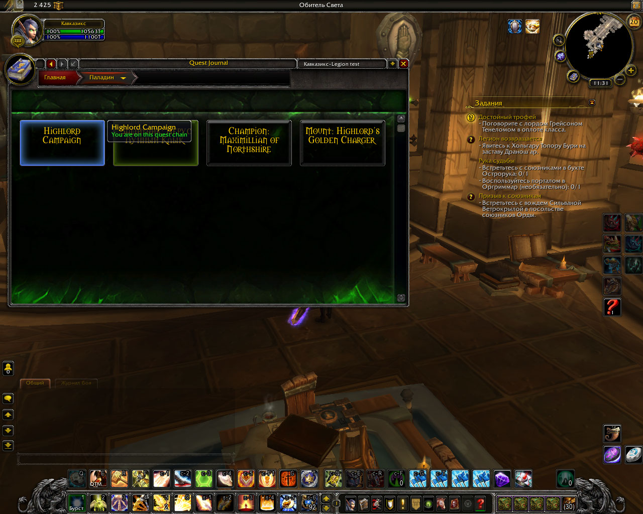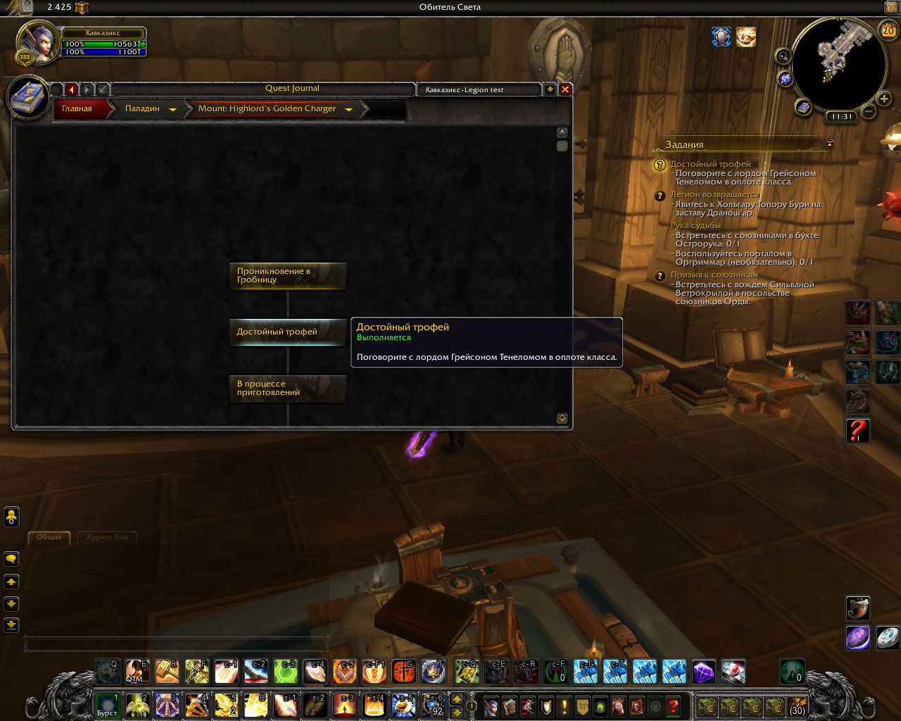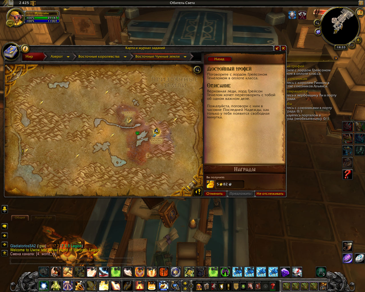 Kukold так у Вас и тактическая карта куда то пощезла. Голая стена. Вопрос тестера вероятно относился к степени выполнения кампании оплота. https://www.curseforge.com/wow/addons/btw-quests-legion/download/2579240 https://www.curseforge.com/wow/addons/btw-quests/download/2580238 подходящая для наших серверов версия аддона , скачивать надо оба файла, распаковывать в папку /Addons в клиенте. Другие подобные аддоны не мешают. Поможет быстрее найти на каких квестах Ваш персонаж остановился. Сюда пожалуйста, скриншот с последнего выполненного квеста кампании оплота и скриншот цепочки квестов на получение маунта. Выполненные квесты помечаются зеленой птичкой. |