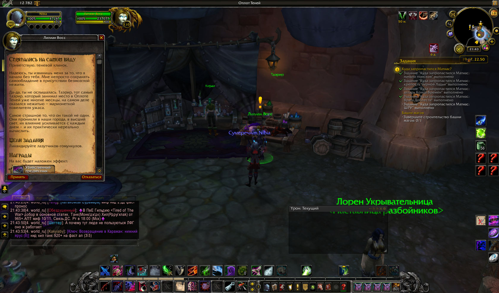 | Description | При получении квеста "Спрятались на самом виду" Лилиан Восс просто исчезает, и первый этап квеста "Выслушайте план Лилиан: 0/1" не засчитывает. Чистка кэша и релог не помогает ни в какой ситуации, пробовал поймать прок этапа на переходке, взяв квест и тут же отменяя его, ничего не получилось, только наспавнил много нпс :D Был ведь схожий баг на Аргусе относительно недавно, с квестом "План Аркаана", может и этот починить удастся?) | ||||