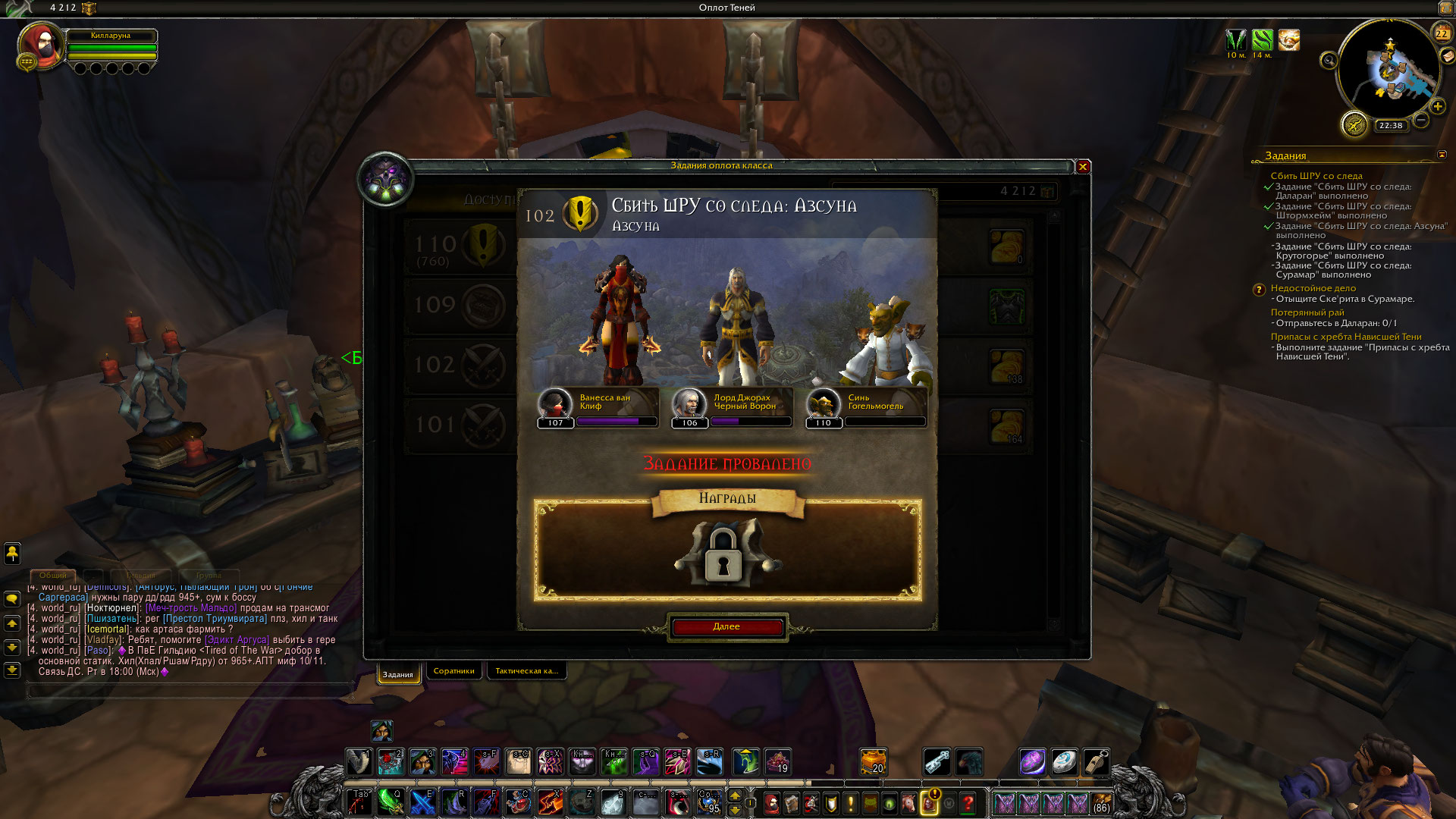 | Description | Квест "Сбить ШРУ со следа" ru.wowhead.com/quest=42684/сбить-шру-со-следа При выполнении третьего шага задания, а именно "Азсуна", выполнение задания фейлится якобы с шансом 69%, хотя изначально шанс был около 130% После фейла новых заданий не появляется Выполнил четыре попытки, проблема стабильна Выполнить квест невозможно. Прошу пофиксить. | ||||