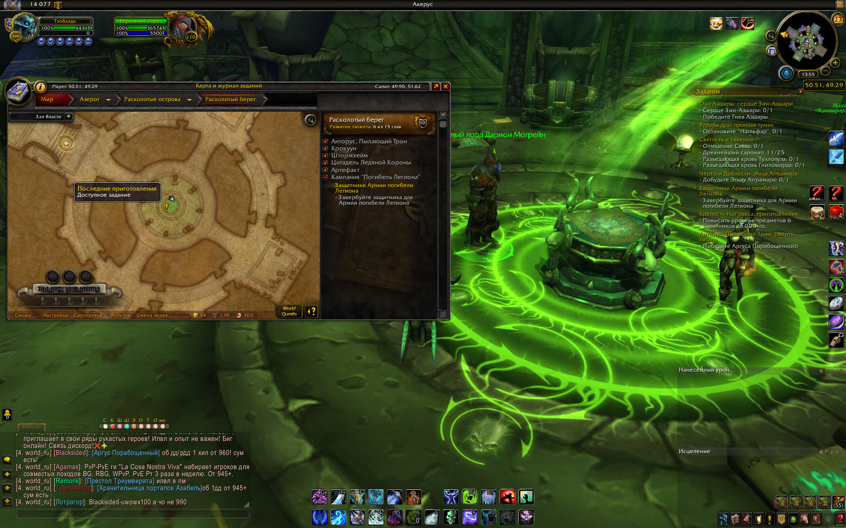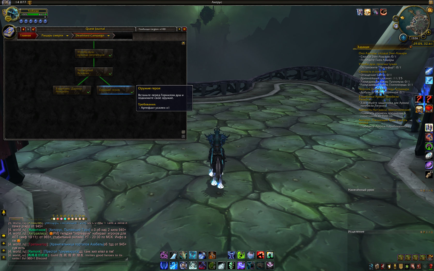| Additional Information | от тестера https://ru.wowhead.com/quest=45240 нельзя взять Сделал полностью все квесты оплота + 3 артефакта https://ru.wowhead.com/npc=113695 Моб в фазе видно только в гм моде | ||||