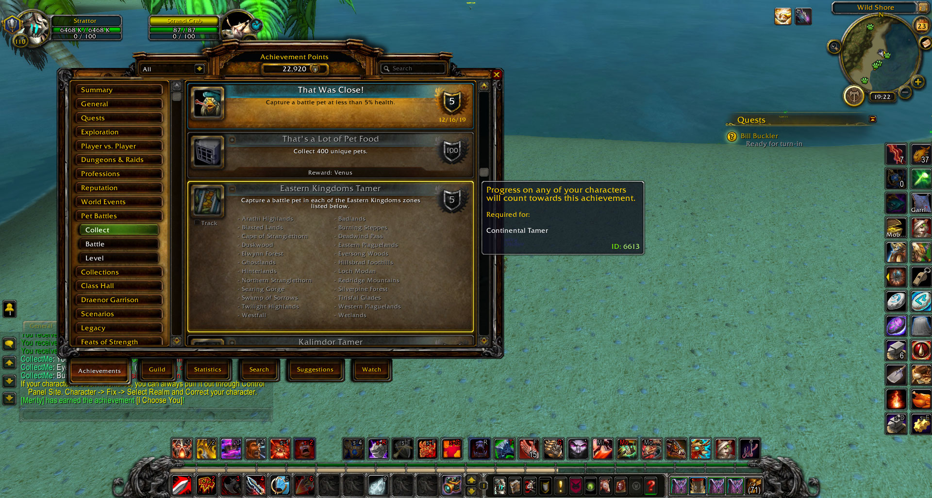 | Summary | 0010596: Eastern Kingdoms Tamer - https://www.wowhead.com/achievement=6613/eastern-kingdoms-tamer | ||||