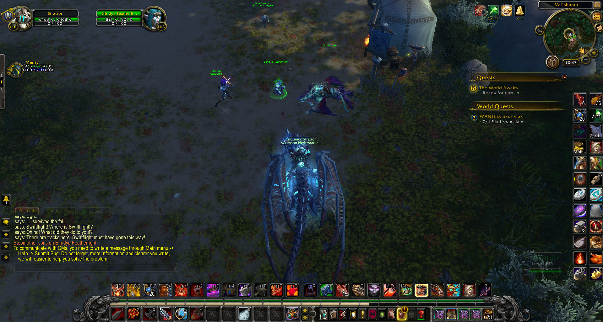 | Steps To Reproduce | After you talk to Elindya Featherlight, she runs to her hippogryph, and after that the mob Skul'vrax should appear, which don't happend. In the screenshot yo can see Elindya Featherlight standing there, motionless, doing nothing. | ||||