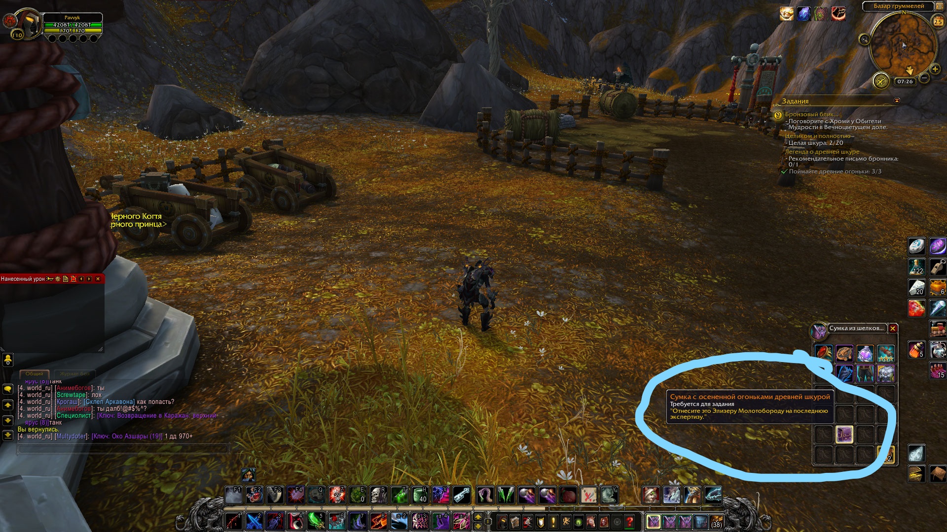 Я этот квест уже выполнял(и второе рекомендательное письмо броника хз где брать) и все другие по цепочке, чтобы сделать чтобы получить осененную древними огоньками шкуру. Мне просто надо было его сдать. И произошел краш. |