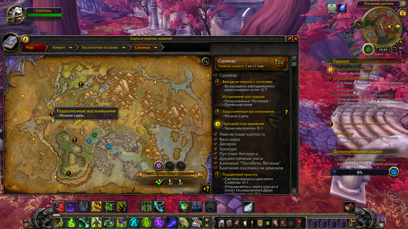 //второй квест-"разрозненные воспоминания. Этот квест я выполнила, но нет НПС, чтобы сдать квест. Сдавать не неписю, а https://ru.wowhead.com/object=247694 . Координаты 21, 52 . Сумка точно есть. |