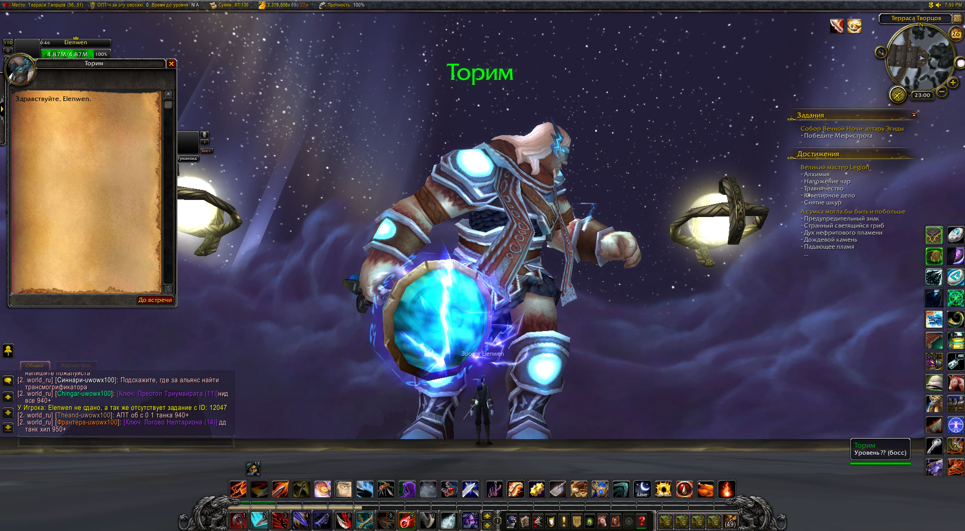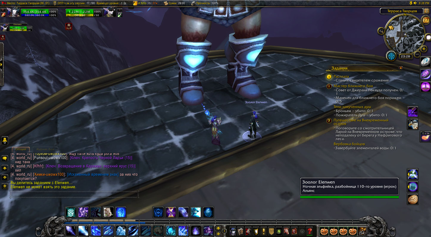 Итак, персонаж был исправлен. Никакого результата это не дало, но наблюдается ещё один любопытный феномен. Другой персонаж, не выполнявший до этого в Грозовой гряде никаких заданий, смог увидеть и взять квест https://ru.wowhead.com/quest=13047/%D1%80%D0%B0%D1%81%D0%BF%D0%BB%D0%B0%D1%82%D0%B0 но не смог предложить его. Со стороны основного персонажа, при попытке получить задание, будучи уже в составе группы, появляется ошибка, указывающая на нарушение цепочки квестов. |