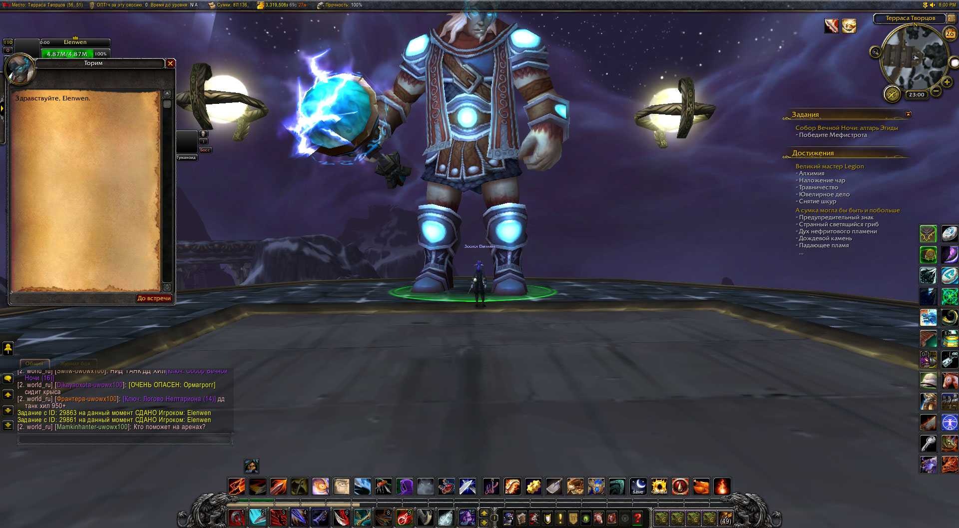 Это задания: https://ru.wowhead.com/quest=29861/%D0%BB%D1%8E%D0%B1%D0%BE%D0%B9-%D1%86%D0%B5%D0%BD%D0%BE%D0%B9 (сдано) https://ru.wowhead.com/quest=13047/%D1%80%D0%B0%D1%81%D0%BF%D0%BB%D0%B0%D1%82%D0%B0 (не сдано) |
