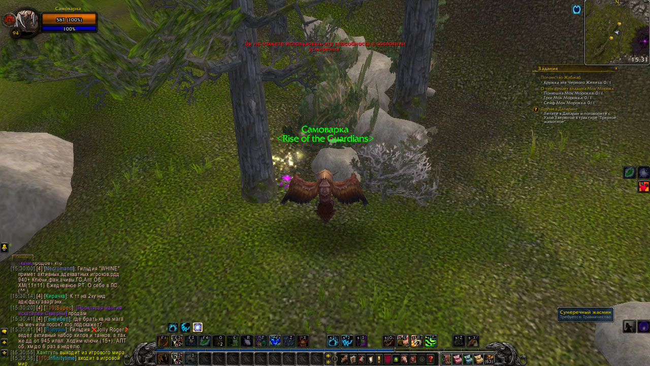| Description | Друид в облике стремительной птицы должен собирать траву не выходя из формы, на данном же сервере почему-то пишет сообщение в центре экрана: "Вы не можете использовать эту способность в состоянии усмирения". Так не должно быть, друид выходит с формы стремительной птицы только при копании руды (без сторонних бафов офк) Данный баг был замечен на таурене, возможно у других рас нет такого бага. | ||||