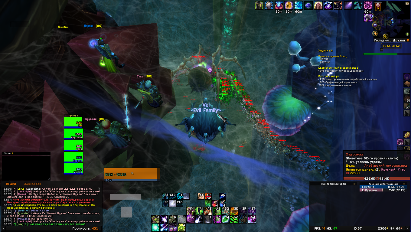 | Description | После исправления был выявлены следующие баги: Ануб'арский сокрушитель несколько раз уходил под текстуры, прямиком к боссу. Происходило это где то в районе спуска (на паутине ( https://ibb.co/WVD7JWV )). После чего эти пауки эвейдились и битва начиналась сначала, спустя 2-3 таких "десантирований" нашей группе удалось убить всех пауков, и к нам поднялся босс. Только пауки не переставали спавнится, а босс был не в силах их убить. После вайпа алгоритм спавна был сломан, и пауки появлялись, словно клоны, из вселенной Звездных воин. https://ibb.co/Yh76QNc https://ibb.co/87nfK5r | ||||