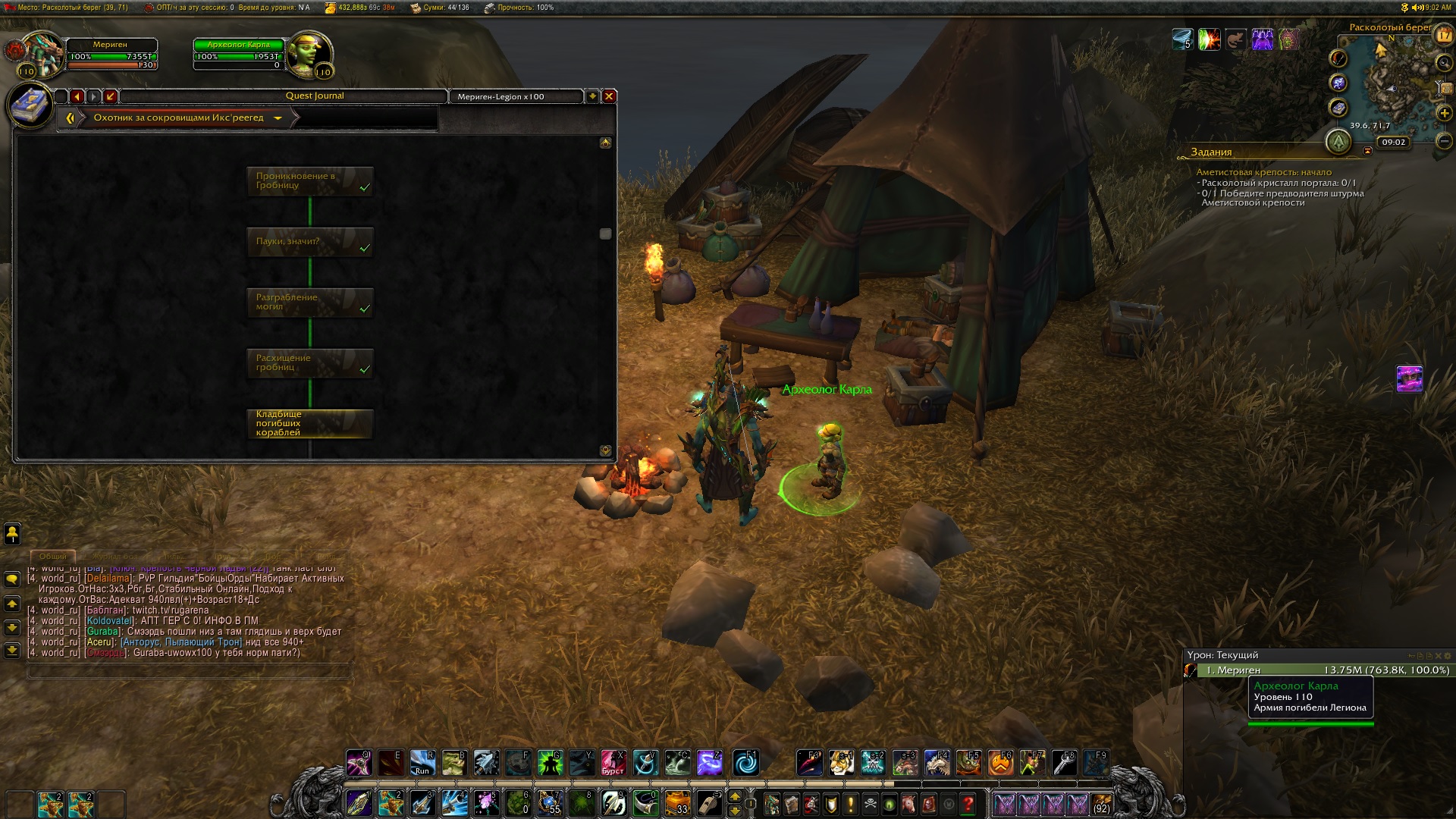 | Description | Расколотые острова, цепочка квестов "Охотрик за сокровищами Икс`реегед. Не появляется квест "Кладбище погибших кораблей". Все предыдущие квесты выполнены по данной цепочке. Квест берется у "Археолог Карла". Но у данного персонажа квест отсутствует. | ||||