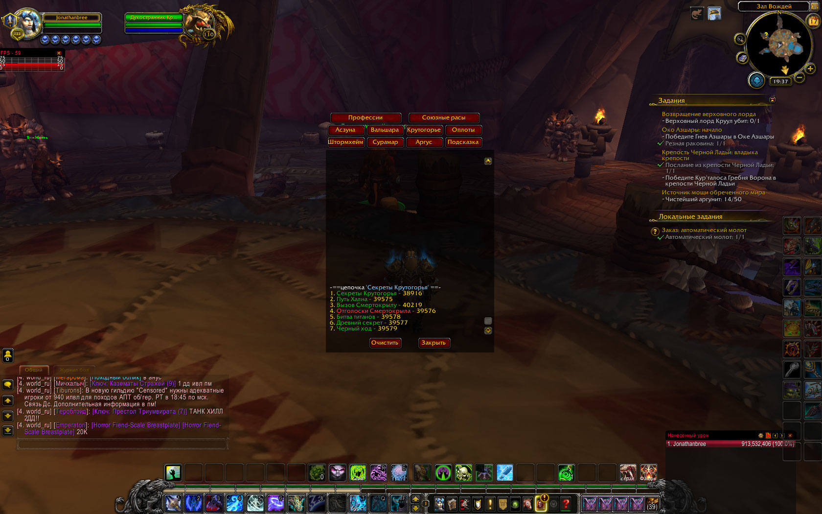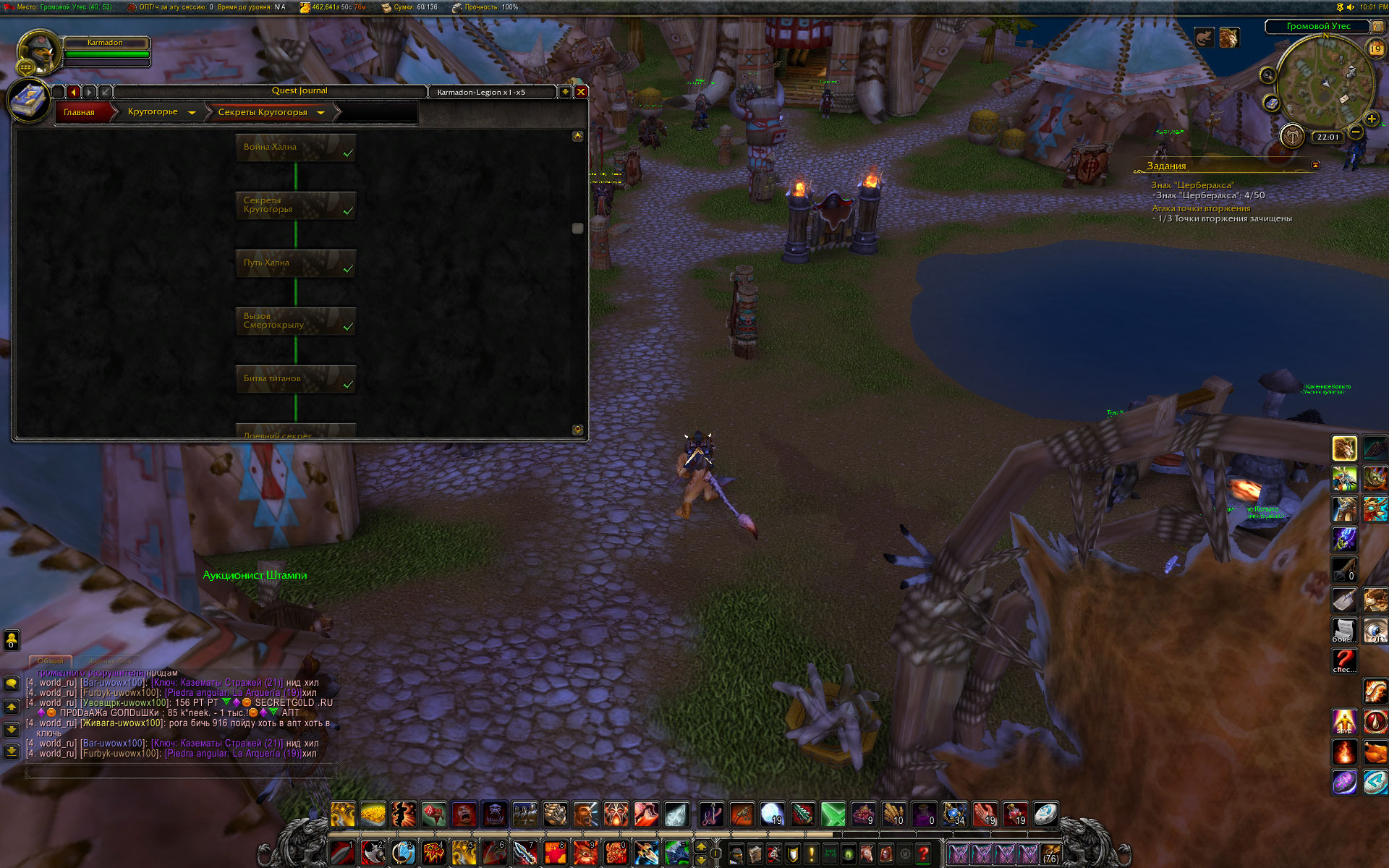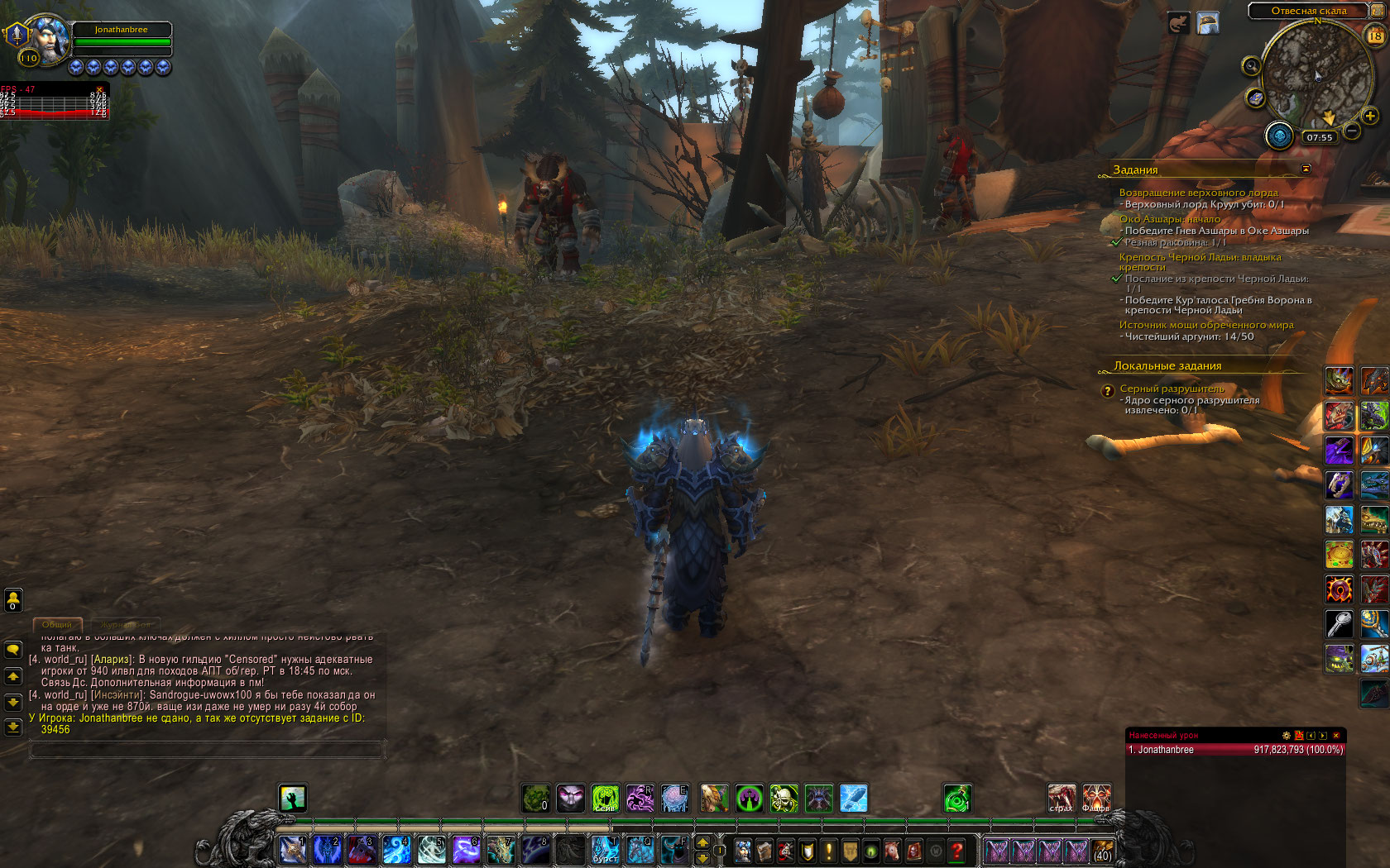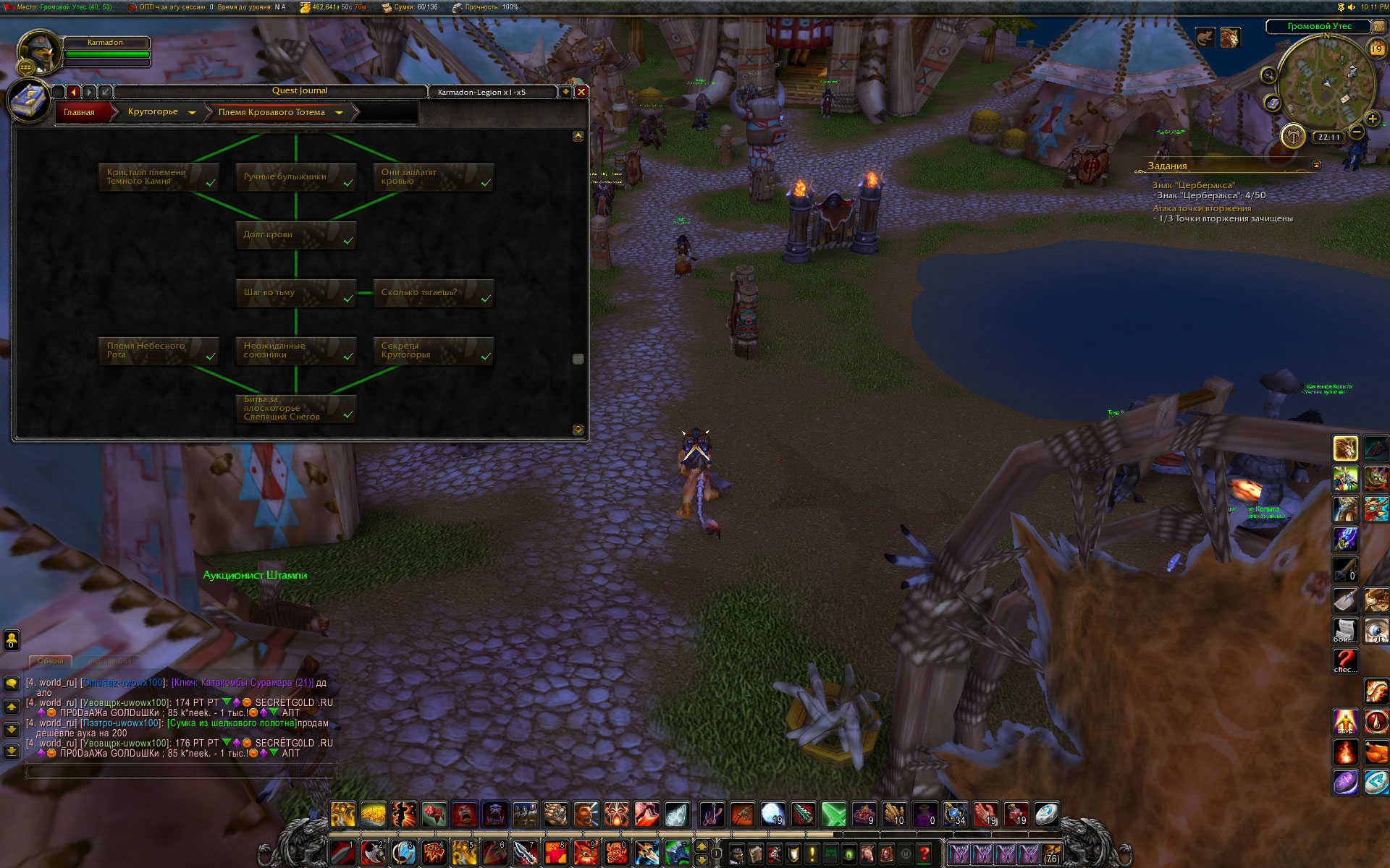 Тестеры принимают в работу запротоколированные баги сервера, которые можно исправить посредством обращения к разработчикам проекта. С одиночными сбоями тестеры помочь не могут, так как у них не прав как либо вмешиваться в игровой процесс. Вместо этого тестеры могут предложить универсальные методы устранения сбоев или предложат обратиться к ГМам на форуме соответствующего сервера (Forum.epicwow.com, forum.uwow.biz и другие), так как перевыдать пропущенный квест могут только они. Но для этого потребуется написать обращение в правильной теме на форуме, оформив ее по принятому на форуме шаблону, и предоставить ГМам исчерпывающую инфу по проблеме. Косвенным доказательством того, что сюжетная цепочка Крутогорья полностью работоспособна является то, что 14 мая я в очередной раз прошел ее на таурене Крутогорья за одну сессию, затратив на все не более 2 часов 53 минут. Скриншот прилагается. То есть в случае острой необходимости можно выполнить отдельную сюжетную цепочку любой из локаций мира ВОВ и она пойдет зачетом в Хранителя мудрости для аккаунта. Но можно попробовать самостоятельно найти пропущенные квесты. Для этого нужно включить (или проверить что включено) отображение на радаре простых заданий - все сюжетки , кроме Сурамара расчитаны на 98 уровень и на 110м не будут отображаться на радаре, если не включить опцию. Например указанные Вами квесты Ночные ведьмы и Отголоски Смертокрыла не являются частью сюжетной цепочки Крутогорья а всего лишь так называемые "дополнительные задачи", которые при уровне персонажа ниже 110 позволяют заработать немного голда, а на 110м уровне трансформируются в локальные задания (не всегда кстати и не во всех локациях). Подвожу итог - аддон от Серого Мыша удобен в качестве обзорного, но все же содержит непринципиальные ошибки. Он был создан в период, когда цепочки квестов еще не были приведены к каноническому (как на оффе) виду. Для надежной проверки квестов лучше использовать другой аддон из тех, что я предлагал - он помимо статуса квестов показывает взаимосвязи между квестами. На скриншотах видна последовательность квестов в двух цепочках, как она должна быть для ХМ. Я рекомендую провериться еще аддоном BtwQuests, 39456 - это квест Неожиданные союзники, открывающий доступ к последней цепочке сюжетки, наравне с еще двумя. Скриншо прилагается. Возможно , еще какие то квесты пропущены. А дальше ищите на вовхеде у кого , у какого НПС с каким ИД надо взять квест и пытайтесь квест получить и выполнить. Если фаза местности поменялась (сюжет то развивается) и НПС уже другой - помочь Вам смогут только ГМы игровго раздела форума, которые назначат способ лечения и перевыдадут квест. Но для этого потребуется пообщаться с ними на форуме Вашего сервера. Возможно эту операцию (обращение на форум) придется повторить несколько раз, пока все пропущенные квесты не будут выполнены. Отсюда вторая рекомендация - если есть твинк 98+ - не теряйте времени и делайте сюжетку Крутогорья заново, постоянно сверяясь с результатами аддона BtwQuests. |