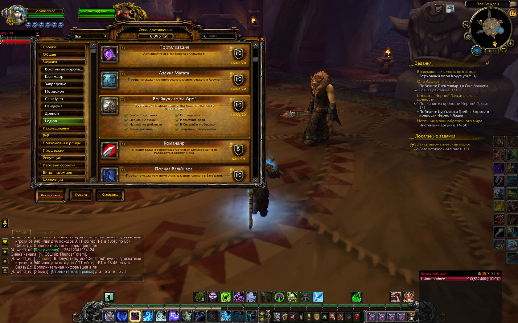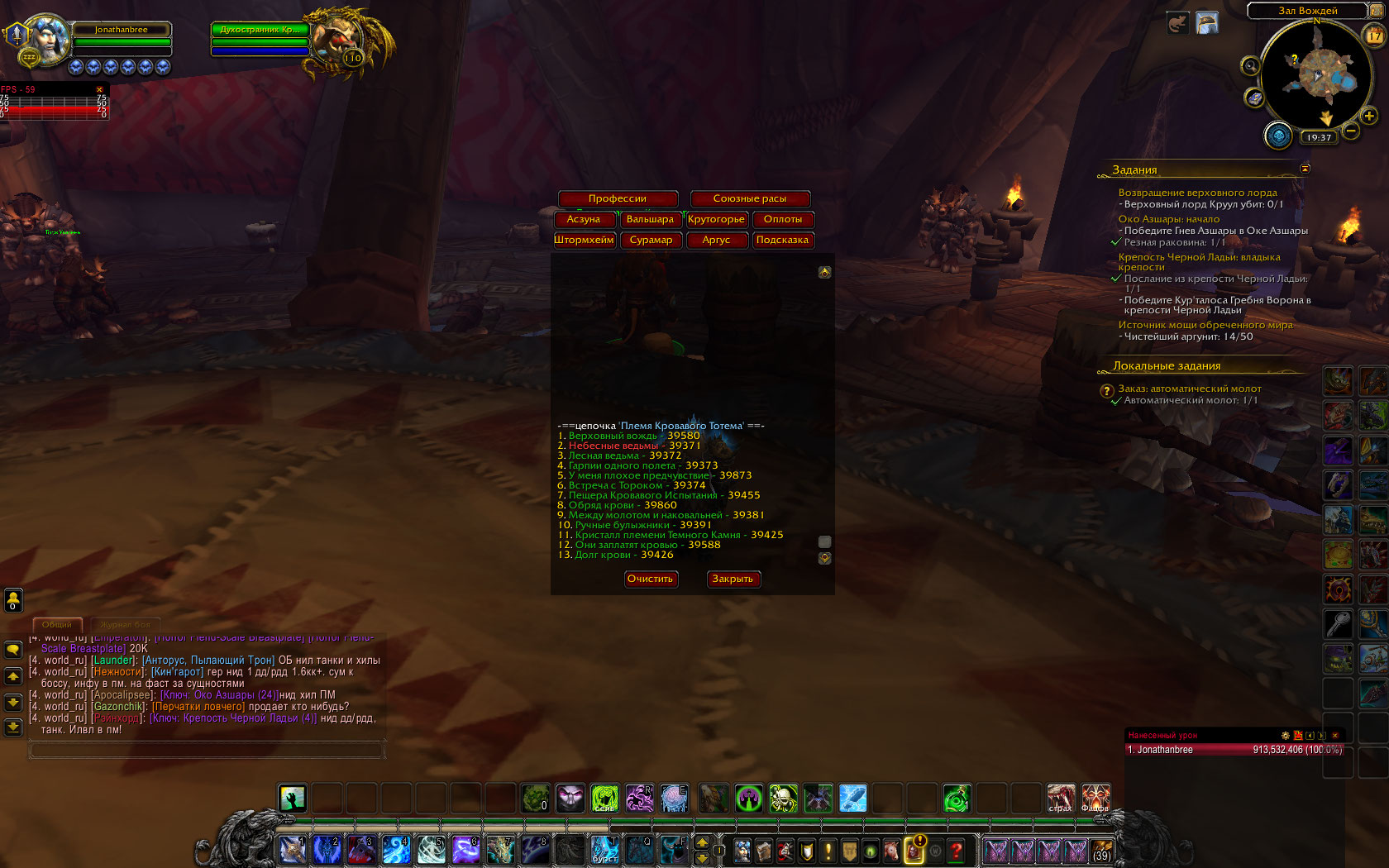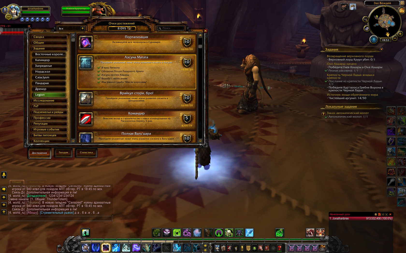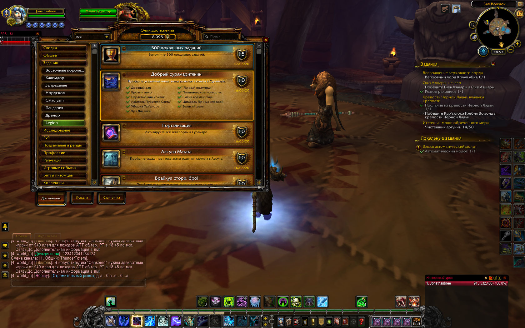 Тестеры принимают в работу запротоколированные баги сервера, которые можно исправить посредством обращения к разработчикам проекта. С одиночными сбоями тестеры помочь не могут, так как у них не прав как либо вмешиваться в игровой процесс. Вместо этого тестеры могут предложить универсальные методы устранения сбоев или предложат обратиться к ГМам на форуме соответствующего сервера (Forum.epicwow.com, forum.uwow.biz и другие), так как перевыдать пропущенный квест могут только они. Но для этого потребуется написать обращение в правильной теме на форуме, оформив ее по принятому на форуме шаблону, и предоставить ГМам исчерпывающую инфу по проблеме. Косвенным доказательством того, что сюжетная цепочка Крутогорья полностью работоспособна является то, что 14 мая я в очередной раз прошел ее на таурене Крутогорья за одну сессию, затратив на все не более 2 часов 53 минут. Скриншот прилагается. То есть в случае острой необходимости можно выполнить отдельную сюжетную цепочку любой из локаций мира ВОВ и она пойдет зачетом в Хранителя мудрости для аккаунта. Но можно попробовать самостоятельно найти пропущенные квесты. Для этого нужно включить (или проверить что включено) отображение на радаре простых заданий - все сюжетки , кроме Сурамара расчитаны на 98 уровень и на 110м не будут отображаться на радаре, если не включить опцию. Например указанные Вами квесты Ночные ведьмы и Отголоски Смертокрыла не являются частью сюжетной цепочки Крутогорья а всего лишь так называемые "дополнительные задачи", которые при уровне персонажа ниже 110 позволяют заработать немного голда, а на 110м уровне трансформируются в локальные задания (не всегда кстати и не во всех локациях). Подвожу итог - аддон от Серого Мыша удобен в качестве обзорного, но все же содержит непринципиальные ошибки. Он был создан в период, когда цепочки квестов еще не были приведены к каноническому (как на оффе) виду. Для надежной проверки квестов лучше использовать другой аддон из тех, что я предлагал - он помимо статуса квестов показывает взаимосвязи между квестами. На скриншотах видна последовательность квестов в двух цепочках, как она должна быть для ХМ. Я рекомендую провериться еще аддоном BtwQuests, 39456 - это квест Неожиданные союзники, открывающий доступ к последней цепочке сюжетки, наравне с еще двумя. Скриншо прилагается. Возможно , еще какие то квесты пропущены. А дальше ищите на вовхеде у кого , у какого НПС с каким ИД надо взять квест и пытайтесь квест получить и выполнить. Если фаза местности поменялась (сюжет то развивается) и НПС уже другой - помочь Вам смогут только ГМы игровго раздела форума, которые назначат способ лечения и перевыдадут квест. Но для этого потребуется пообщаться с ними на форуме Вашего сервера. Возможно эту операцию (обращение на форум) придется повторить несколько раз, пока все пропущенные квесты не будут выполнены. Отсюда вторая рекомендация - если есть твинк 98+ - не теряйте времени и делайте сюжетку Крутогорья заново, постоянно сверяясь с результатами аддона BtwQuests. |