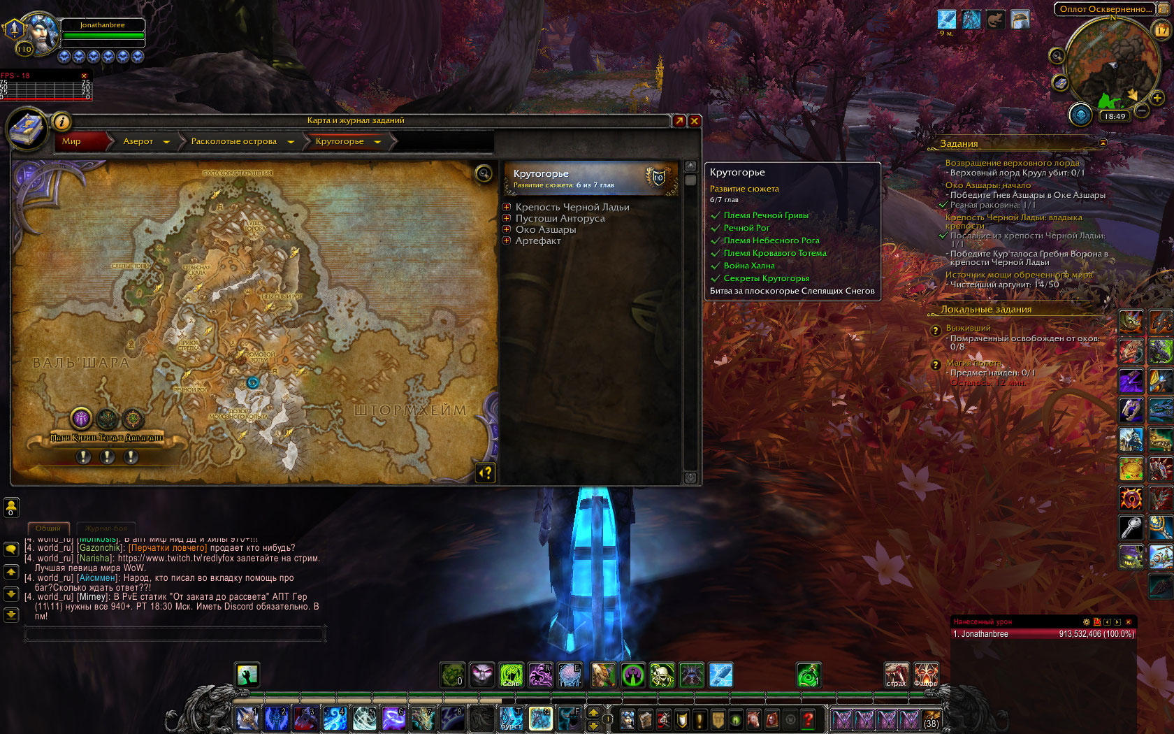 Вот два аддона для проверки квестовых цепочек. показывают по разному , у каждого есть свои плюсы и минусы. Я пользуюсь и тем и тем. https://www.curseforge.com/wow/addons/btw-quests-legion/download/2579240 https://www.curseforge.com/wow/addons/btw-quests/download/2580238 подходящая для наших серверов версия аддона , скачивать надо оба файла, распаковывать в папку /Addons в клиенте. Другие подобные аддоны не мешают. http://u90850je.bget.ru/wow/Questline_tester_1.3.rar This addon can help us with this problem И приложу к сообщению скриншот из первого аддона, там хорошо видно зависимости одних квестов от предыдущих. В частности Нужный Вам квест требует закрытых трех предыдущих цепочек. Воспользуйтесь одним из аддонов и проверьте все пройденные квестовые цепочки, возможно какие то квесты не засчитались, были пропущены или сбросились в результате падения сервера. Найдете такой пропущенный квест - пыптайтесь найти его в локации самостоятельно, если не получится, сделайте скриншот и предоставьте его сюда. Также желателен скриншот с доказательством , что все сюжетные цепочки Крутогорья полностью выполнены и финальные квесты зачтены как критерии достижения. |