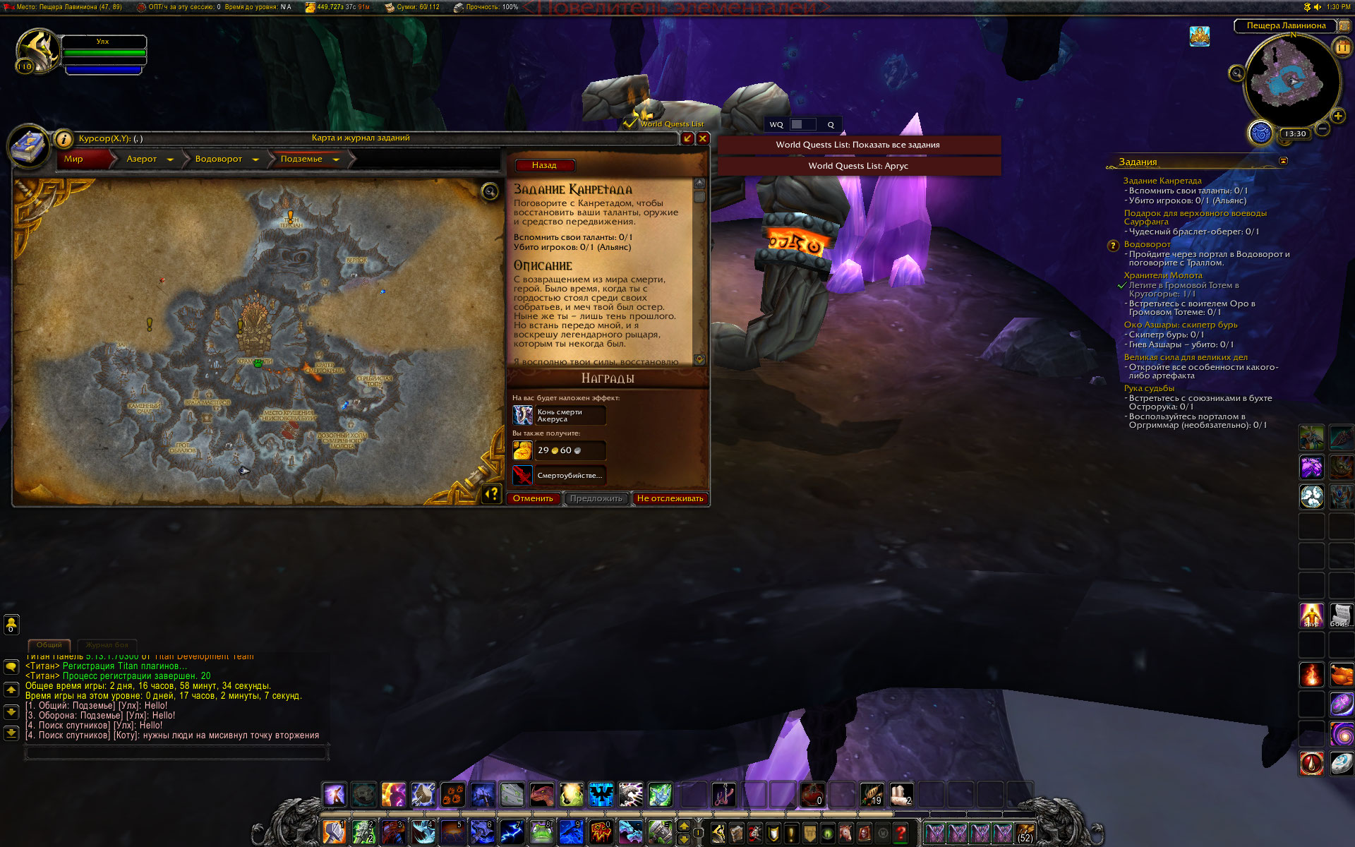 | Steps To Reproduce | вылезло в процессе выполнения квестов на 2 критерий сюжетки Подземья (https://ru.wowhead.com/quest=27938) явный сбой, непонятно что с ним делать. Отменить и забыть? | ||||