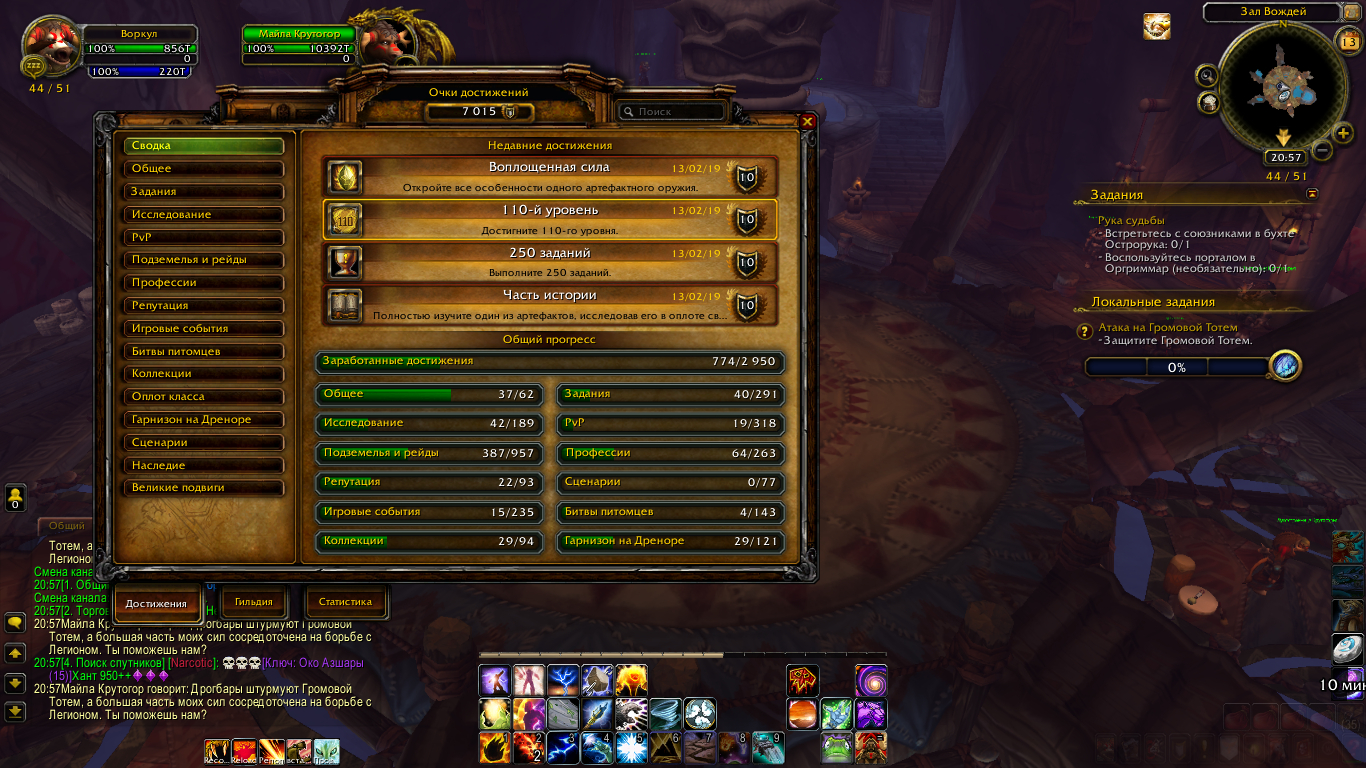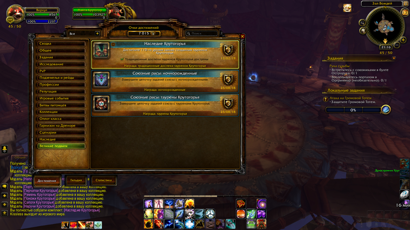 | Description | 1. Получил 110 лвл Тауреном Крутогорья без доната и акций. 2. Не выдалось задание https://ru.wowhead.com/quest=49783/наследие-крутогорья, для получения ачивы https://ru.wowhead.com/achievement=12415/наследие-крутогорья. Пробовал через дебагера решить проблеу, не вышло. | ||||