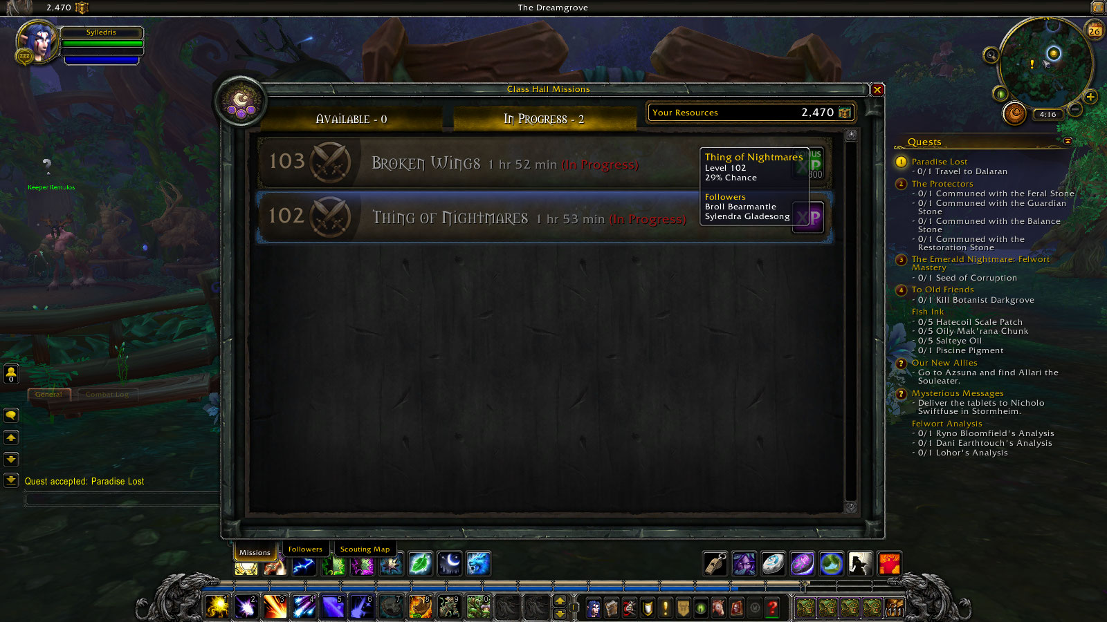 | Summary | 0011370: https://www.wowhead.com/mission=1167/thing-of-nightmares | ||||