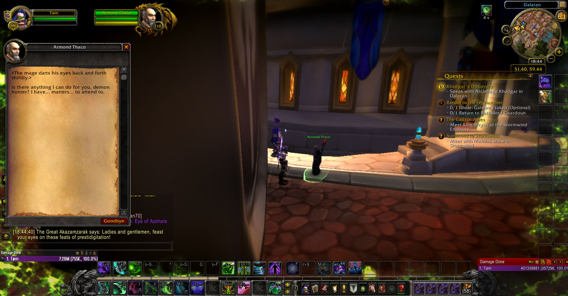 | Description | NPC is located in Dalaran With DHs Spectral Sight a Chat Option should appear to start a fight against him Does not work here at all | ||||