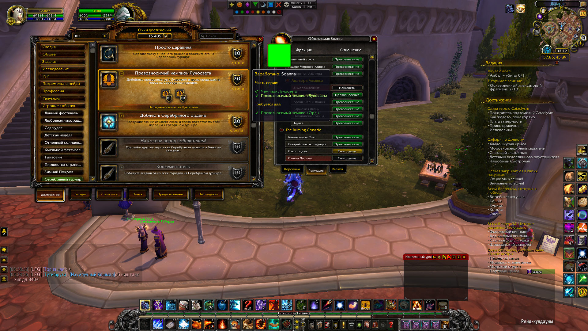 DescriptionПосле получения превознесения с Похитителями Солнца и получением достижения "Чемпион Орды", "Превозносимый чемпион Орды" нет получения ачивы "Похитители Солнца", которые открывают ежедневные квесты в Серебряном Авангарде, и благодаря которым покупаются маунты, петы и т.д.