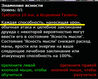 | Additional Information | Знамение ясности Ферал прокает только от автоаттак, хотя должен от спелов тоже прокать | ||||