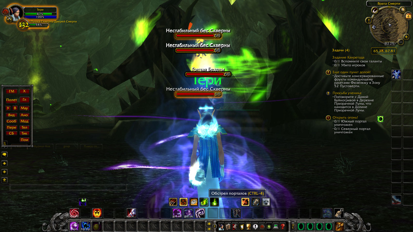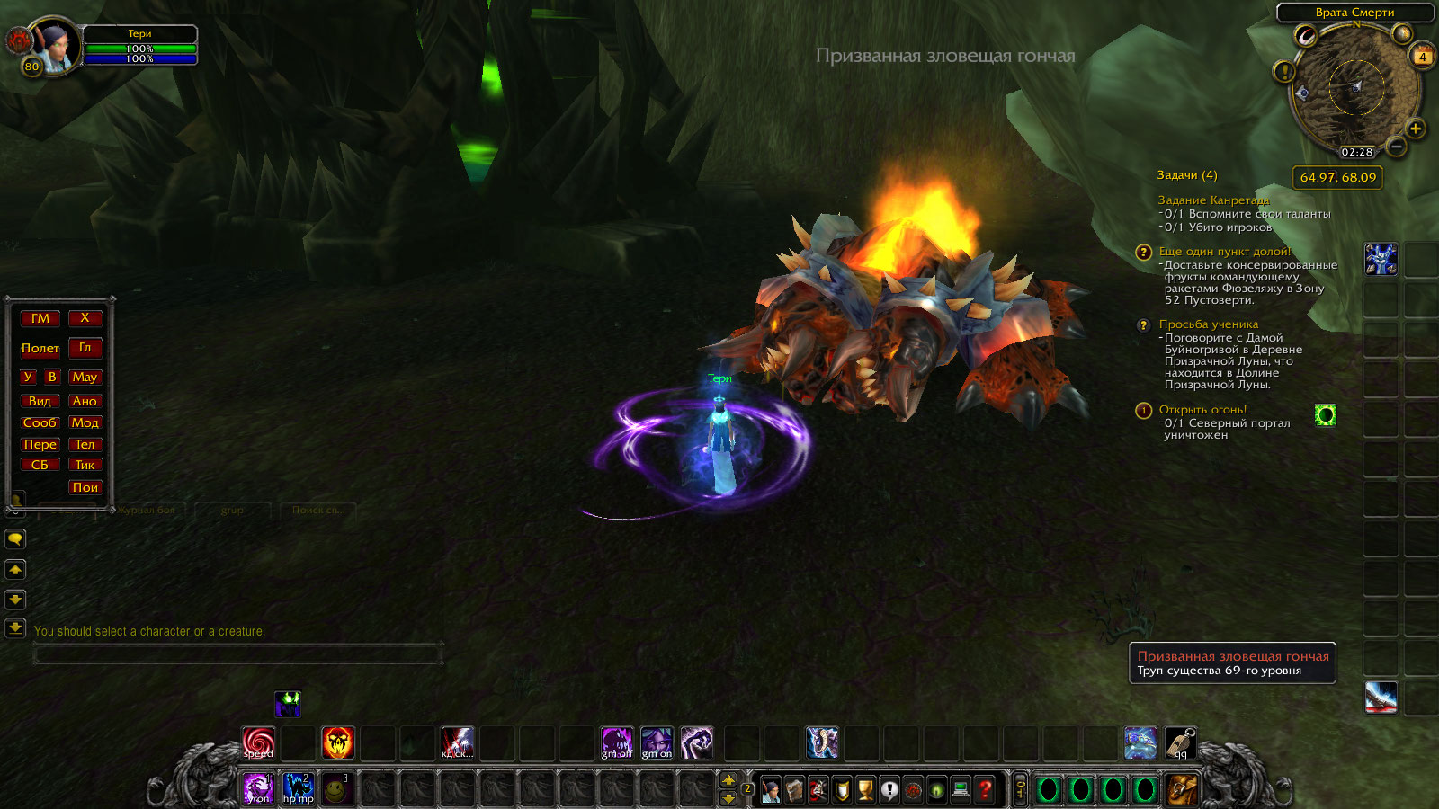 | Description | Мобы должны вылазить из портала и бежать к пушке, пытаясь ее убить, у нас они стоят на месте хотя и нормально так валят. После убийства мобов и закрытия портала появляется собака - https://ru.wowhead.com/npc=21837/ прозрачная вообще, только когда умерла - обрела облик. Около второй пушки (62 60) все работает исправно. | ||||
