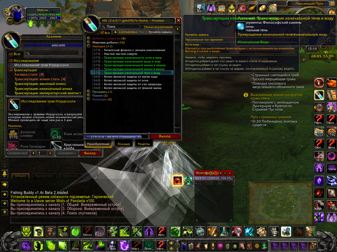 | Description | Уже долгое время занимаюсь трансмутацией Изначального воздуха -> огонь -> земля -> вода -> воздух, но новые рецепты трансмутации вроде https://ru.wowhead.com/spell=28580/трансмутация-изначальной-тени-в-воду не появляются, требуется проверка тестера | ||||