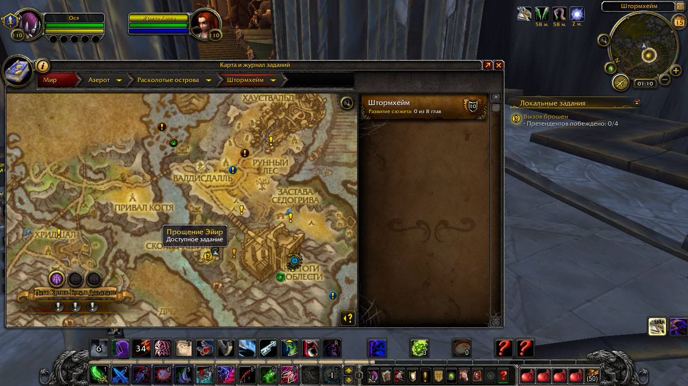 | Description | В общем, сделал я цепочку квестов на вид для артефакта мути роги. https://ru.wowhead.com/quest=45526/%D1%8F%D1%80%D0%BE%D1%81%D1%82%D1%8C-%D0%BA%D0%BE%D1%80%D0%BE%D0%BB%D0%B5%D0%B2%D1%8B-%D0%B1%D0%BE%D0%B3%D0%B8%D0%BD%D0%B8 Убил значит в сценарии Эйир. После этого мне выдали квест - https://ru.wowhead.com/quest=45527/%D0%BF%D1%80%D0%BE%D1%89%D0%B5%D0%BD%D0%B8%D0%B5-%D1%8D%D0%B9%D0%B8%D1%80 Суть его в том что бы я пошел в склеп Эйир что около Чертогов Доблести, выслушал там реплики и сдал его. НО. После телепортации с сценарии этот квест у меня пропал, и теперь он просто показан на карте в месте где его нужно сдать (на скринах приагается). Там естественно этот квест ни взять ни сдать нельзя. Вообщем то прошу банальной помощи... Согласен даже на откат фул цепочки. Либо же что бы мне выдали этот квест на персонажа. Ник - Ося. Легион x100. | ||||
