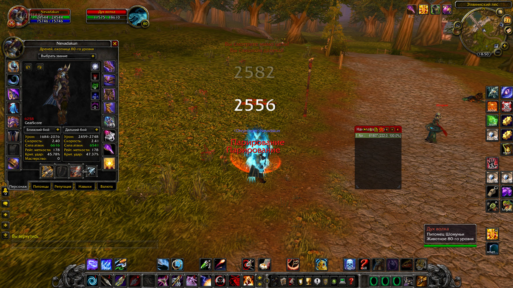 Достоверная информация про хит фералспирита: - угу, только вот ты снова сел в лужу. приведенный тобой пруф взят с PTR где волки скейлились от AP 1к1, о чем у тебя говорит например вот эта строка - owner_coeff.ap_from_ap = 1.0; и да, волки даже на офе миссуют. рандомный лог http://www.worldoflogs.com/reports/rt-l4dct09eeoaz6pd7/details/51/?s=5813&e=6084 - 1.5% шанс миса у волков, при 19% миссов у шамана http://www.worldoflogs.com/reports/rt-l4dct09eeoaz6pd7/details/23/?s=5813&e=6084, так что даже с софткапом волки должны мазать. |
