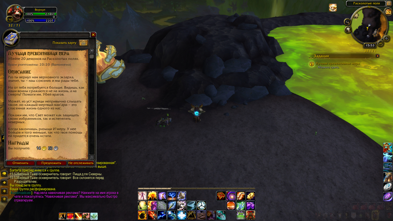 | Description | 1. При сдаче квеста https://ru.wowhead.com/quest=46213 нпс'и https://ru.wowhead.com/npc=121578 провалилась в текстуры, и стало невозможным сдать квест https://ru.wowhead.com/quest=47541 и в следствии, продолжить цепочку квестов Аргуса. | ||||