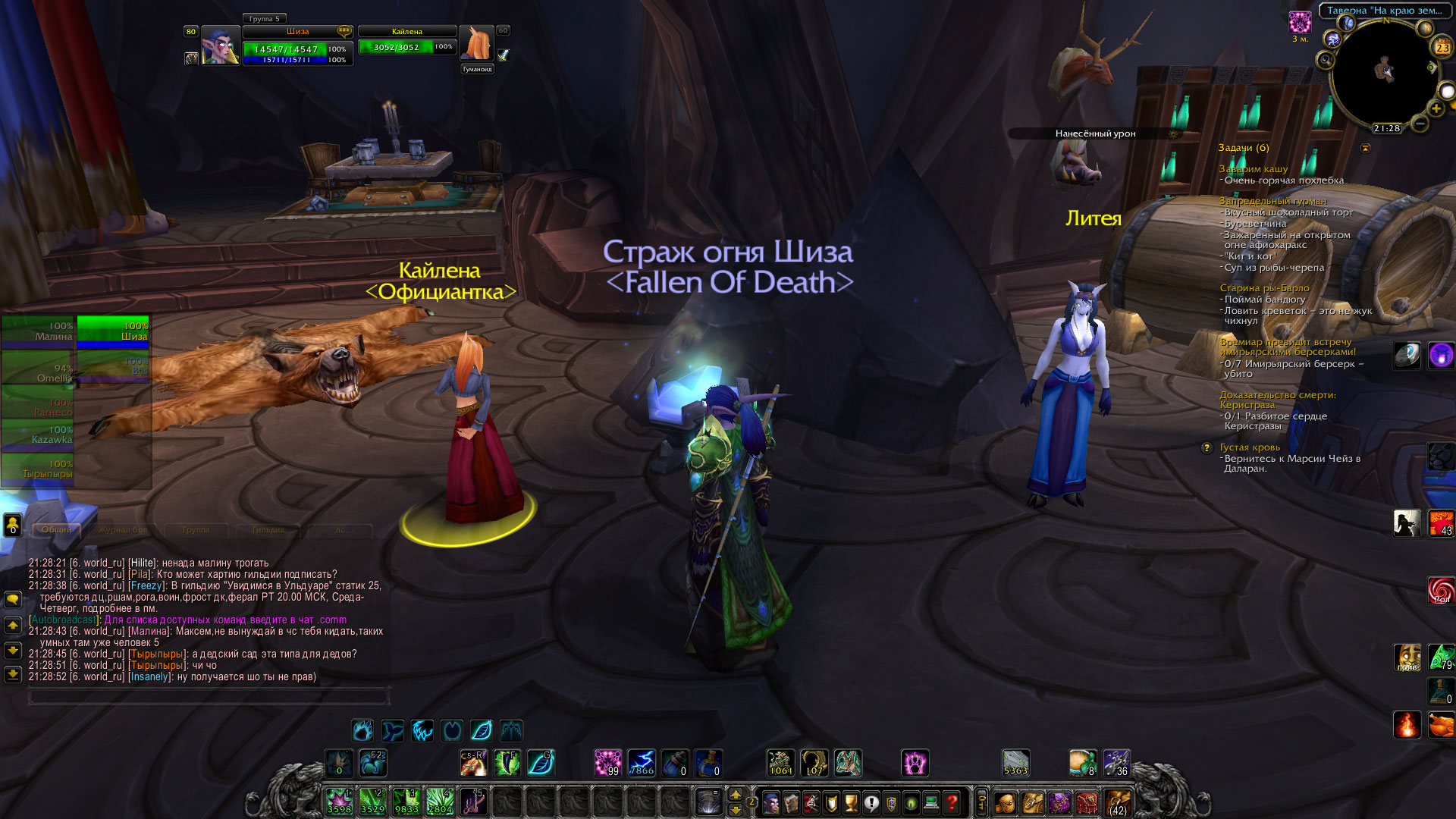 Увы я не нашла информацию о том, что она должна быть за барной. По информации с вовхеда она гуляет по бару. У нас https://ru.wowhead.com/npc=19186/ стоит и танцует, чего делать не должна. это должна делать https://ru.wowhead.com/npc=19064/. |