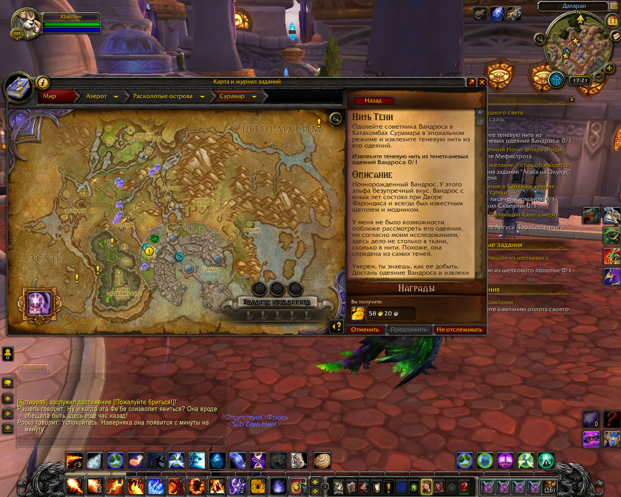 | Description | Здравствуйте, я взял квест Нить тени(Портяжное дело),в нем сказано что надо пройти Эпохальное подземелье Катакомбы Сурамара , я прошел их на 3 уровне, с последнего босса Советника Вандроса должно было упасть его одеяние чтобы извлечь нить тени, но оно не упало,упал только эпохальный ключ и сила артефакта, прошу помощи | ||||