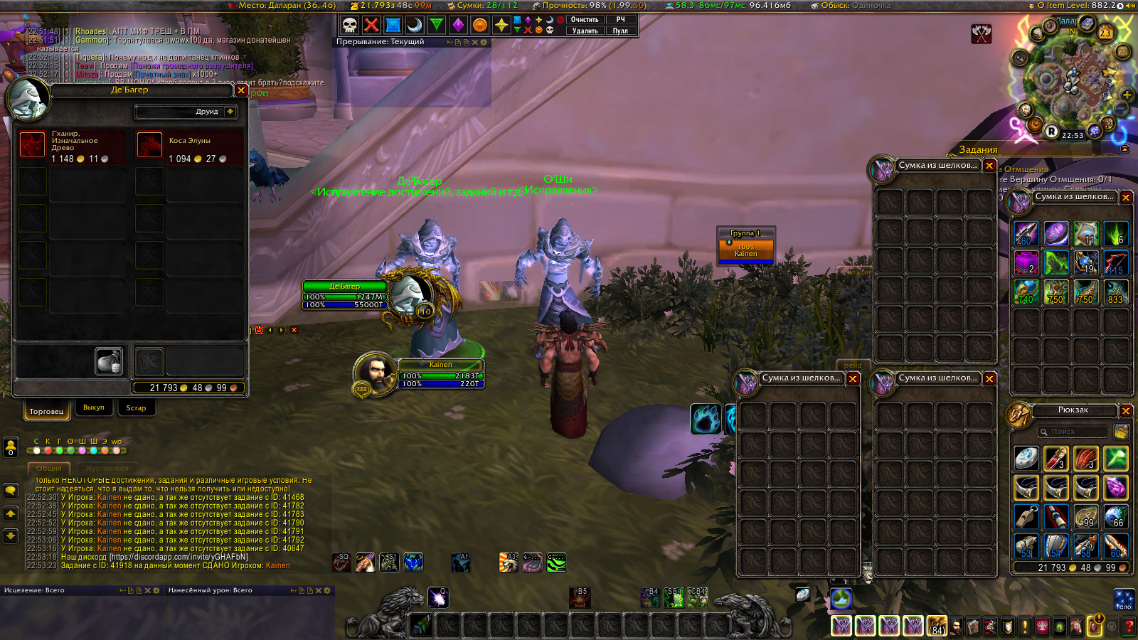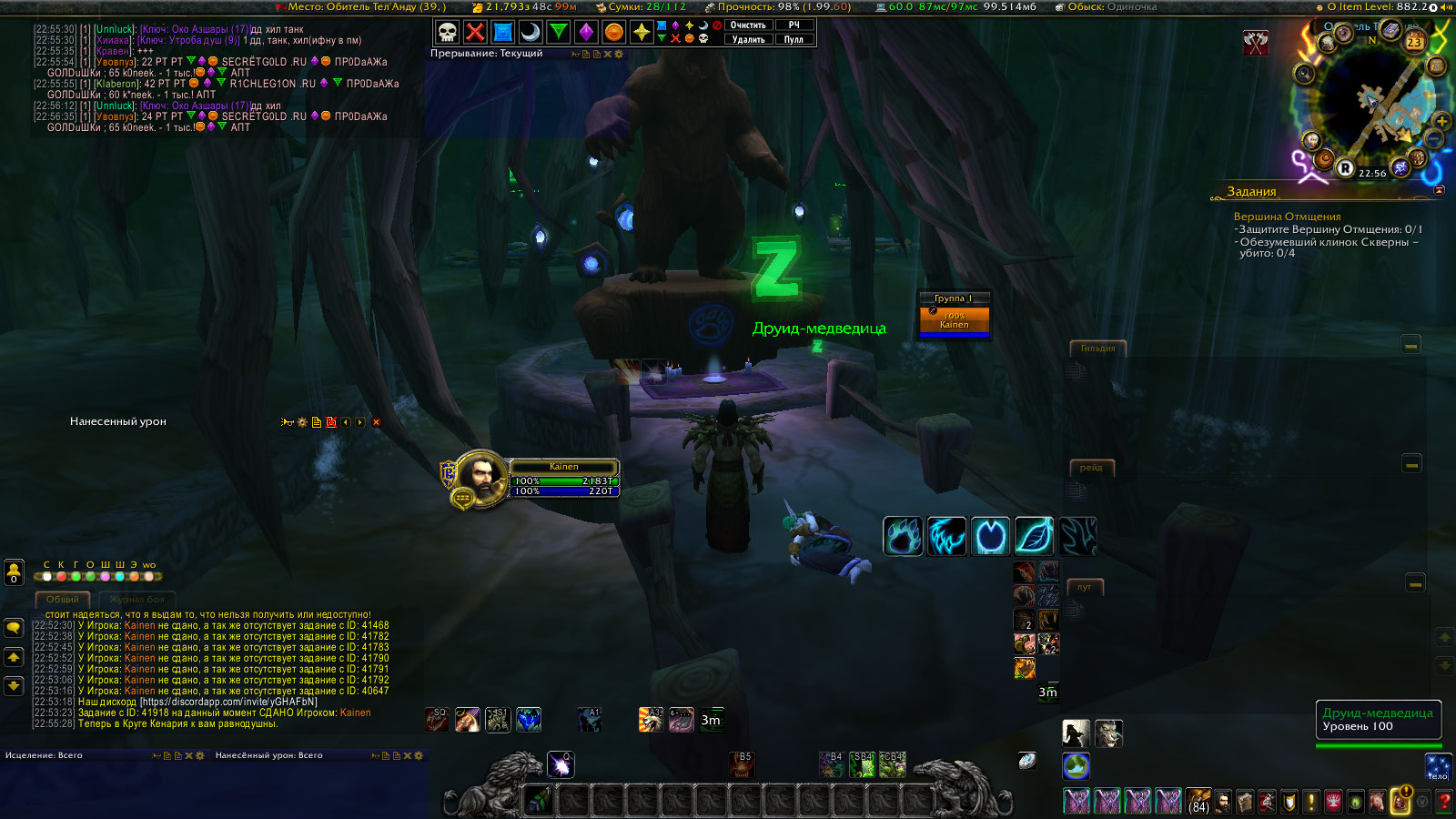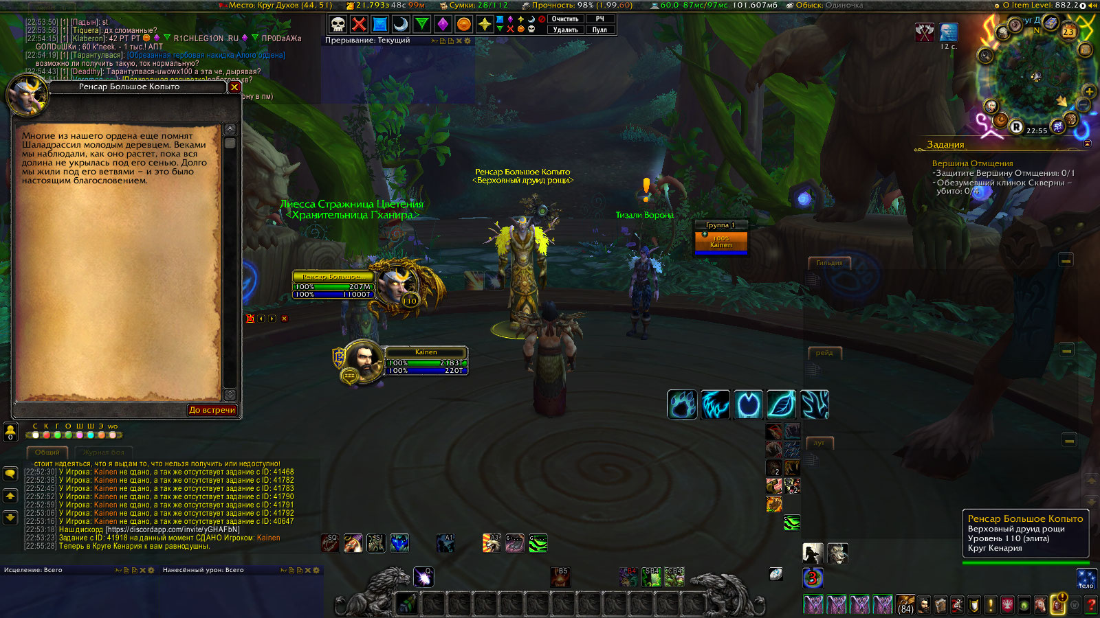 DescriptionКачнул персонажа (друида), начал выполнение квестов оплота, выполнил квесты и получил 3 артефакта (на сову, хила, кота). Квесты на танковский артефакт вроде начинал делать, но не закончил. Затем продолжительное время не играл за персонажа. И вот зашел поиграть, нужно было получить последний арт. Но квеста нет. Артефакта нет. У дебагера его тоже нет. Цепочку квестов пробил на выполненность и выяснилось, что ни один кроме последнего не выполнен... Я так и не пойму как такое возможно... Искал нпц на всех этапах цепочки, но тщетно. У дебагера я вбивал этот квест на исправление, но не помогло. Удаление кеша, эррорс, исправление персонажа тоже не помогло. Скрины прилагаю.