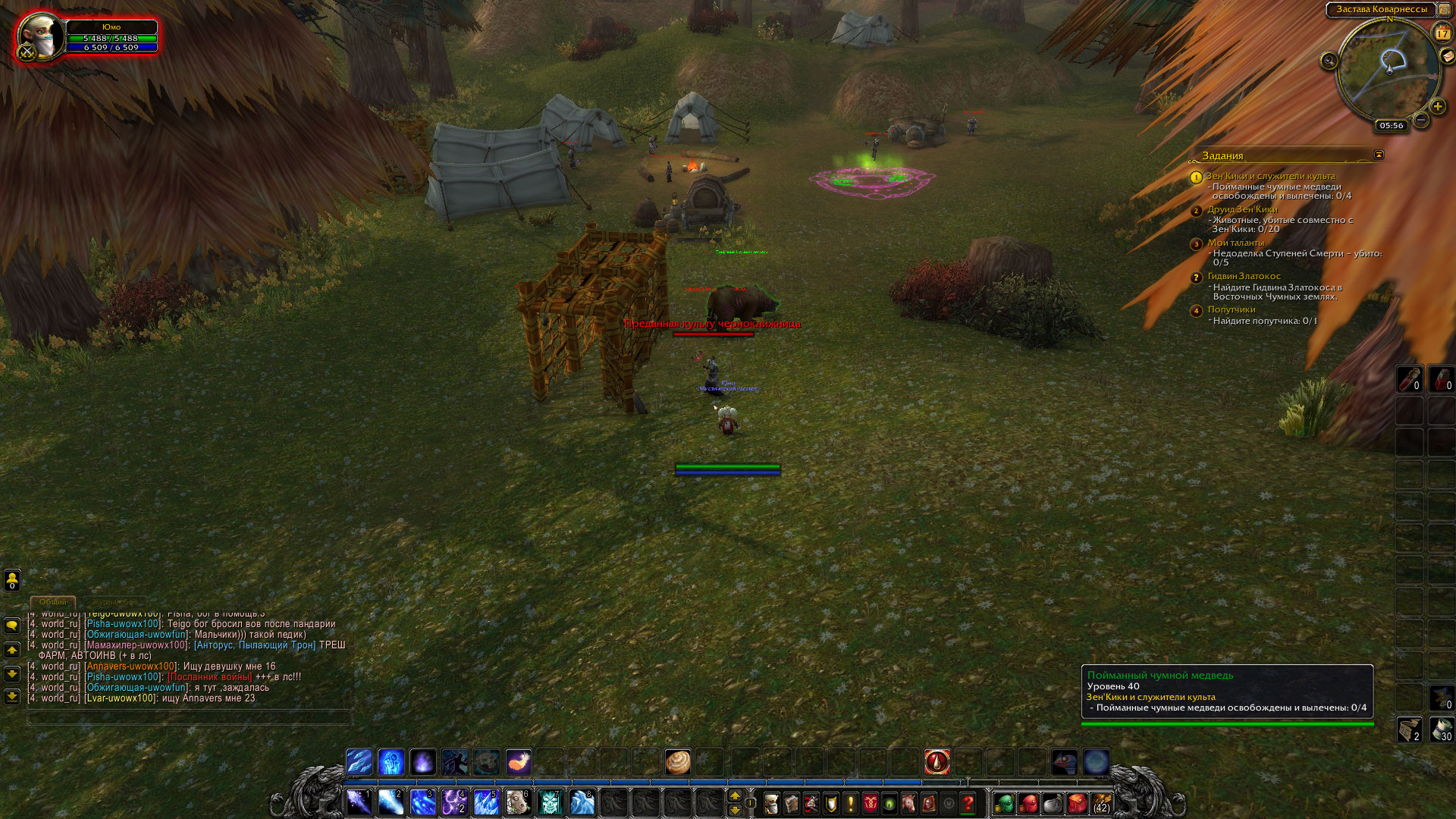 | Description | 1. https://ru.wowhead.com/quest=26955/зенкики-и-служители-культа - ссылка на квест 2. https://www.youtube.com/watch?v=ZR-E-e5H-nk - должен работать вот так При открывании клеток с медведями, медведь исчезает и ничего не происходит. | ||||