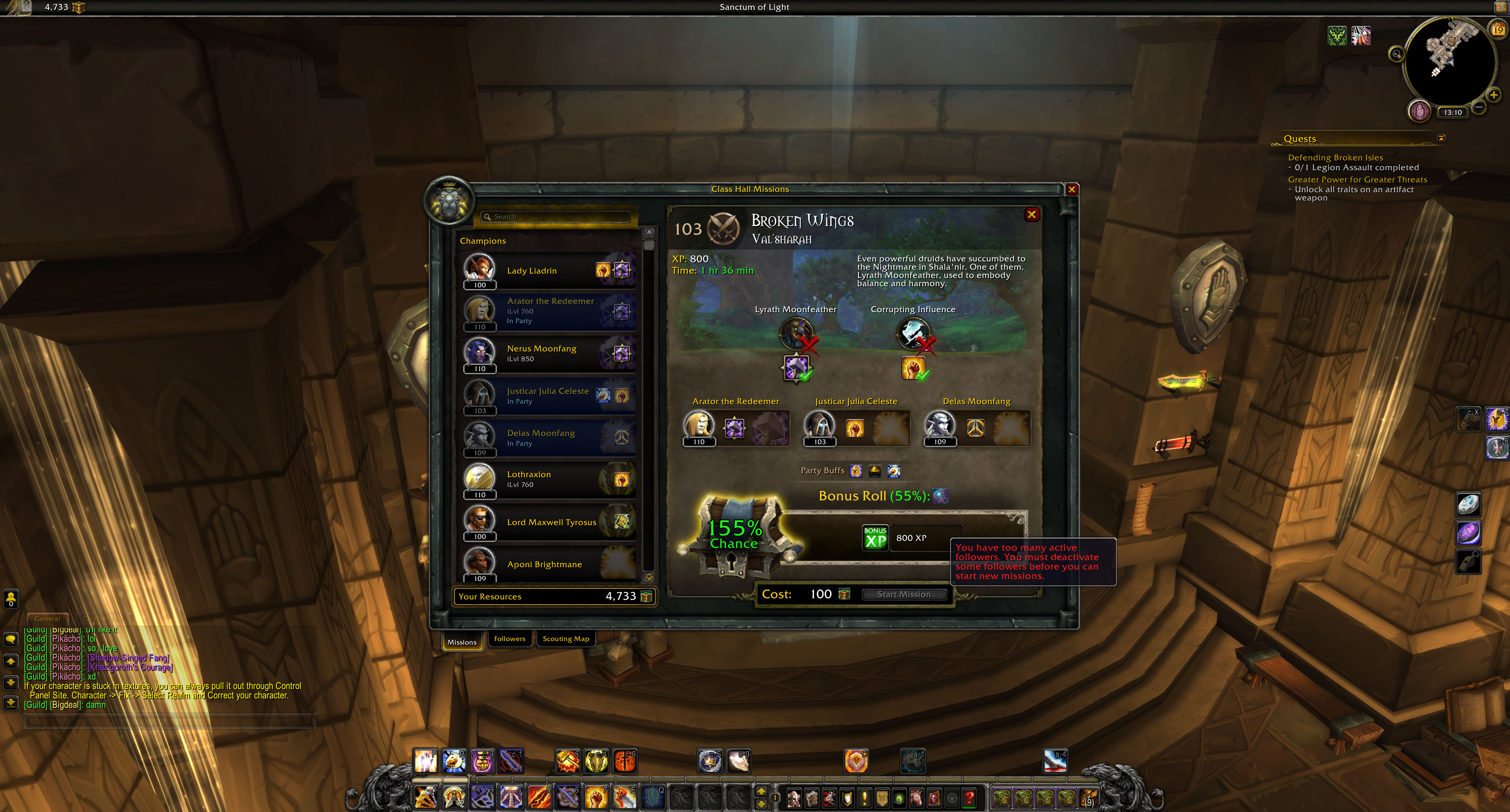 Hey. Globally, everything is bad. The presence of missions in the stronghold in the absence of a portal and an artifact forge suggests that the character had a hard life. You either transferred the character from another server, or obtained it in other ways. Specifically for missions. The number of active defenders at any given time cannot exceed 6 units (or 7 units if an improvement of the stronghold is chosen). The rest must be in reserve so that missions can be activated. The status of the Order Campaign can and should be checked by installing the BtwQuests addon with the Legion addon (the second part of the addon). Links to the addon will be below. |