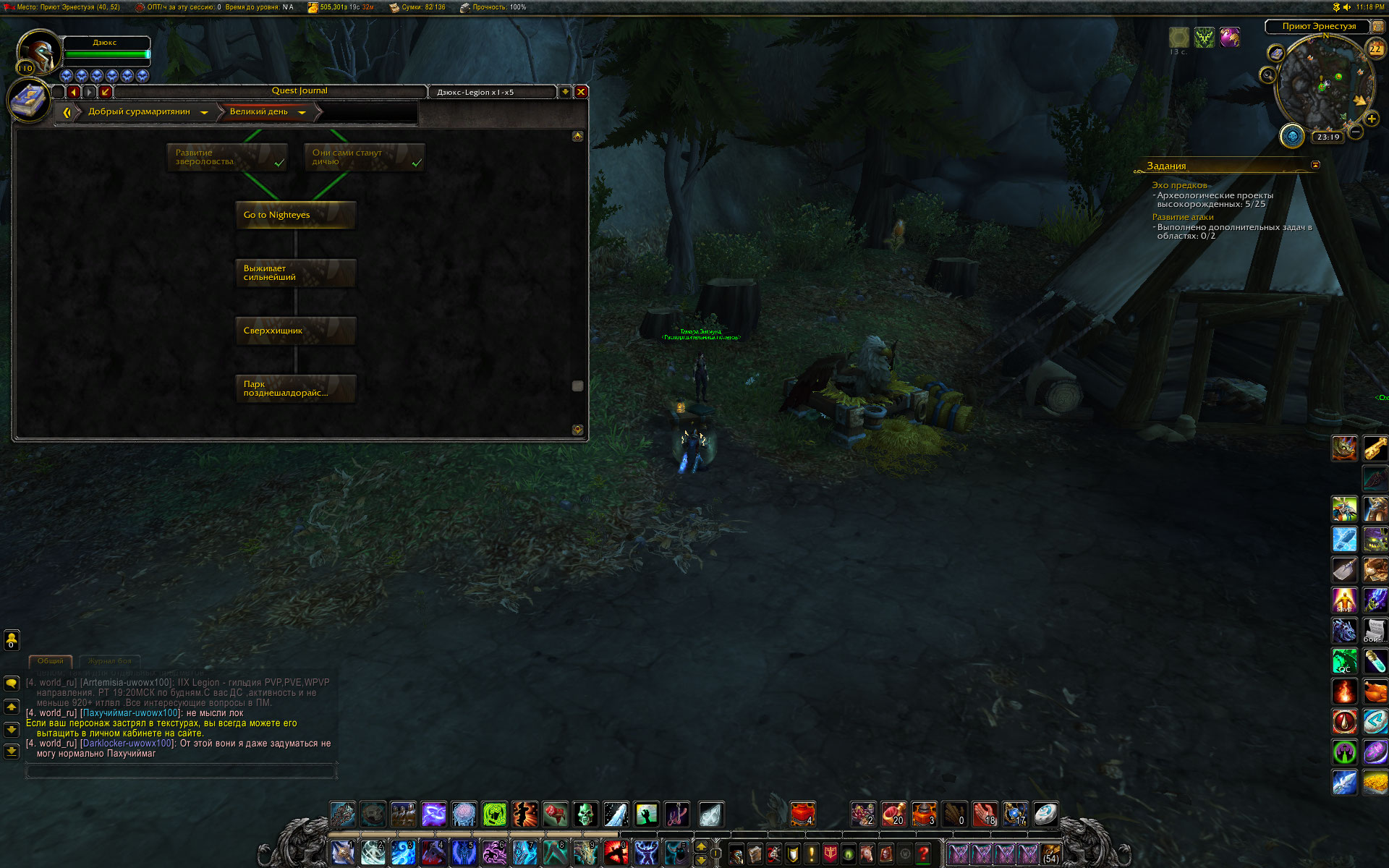 | Description | После выполнения квеста "Они сами станут дичью" (https://ru.wowhead.com/quest=41215/%D0%BE%D0%BD%D0%B8-%D1%81%D0%B0%D0%BC%D0%B8-%D1%81%D1%82%D0%B0%D0%BD%D1%83%D1%82-%D0%B4%D0%B8%D1%87%D1%8C%D1%8E) Ночноглаз должен переместиться в Сурамар (в точку 50 56) где должен появиться в бассейне с животными в водной форме друида(https://ru.wowhead.com/npc=110987/%D0%BD%D0%BE%D1%87%D0%BD%D0%BE%D0%B3%D0%BB%D0%B0%D0%B7). Но его там к сожалению нет. Соответственно нет нпс- нет квеста "Выживает сильнейший"(https://ru.wowhead.com/quest=41216/%D0%B2%D1%8B%D0%B6%D0%B8%D0%B2%D0%B0%D0%B5%D1%82-%D1%81%D0%B8%D0%BB%D1%8C%D0%BD%D0%B5%D0%B9%D1%88%D0%B8%D0%B9#comments). А проходить эту ветку квестов нужно чтобы открыть полеты на расколотых островах | ||||