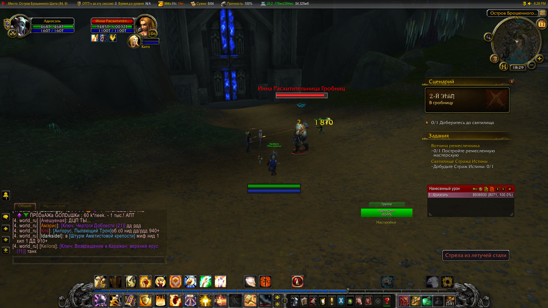 | Steps To Reproduce | https://ru.wowhead.com/quest=42017/святилище-стража-истины#guides https://ru.wowhead.com/npc=106245/инна-расхитительница-гробниц#abilities По сюжету, голый прото-паладин прилетает за своим артефактом к гробнице, где его встречает агрессивная дама и сразу нападает. С паладином два соратника: ретропал с нулевым уроном и холипал, который хилит как бог на душу ляжет, да и то я в прото себе больше хитов восстанавливаю за один каст, чем он. При этом дама с одной атаки сносит мне четверть здоровья, так что дольше двух минут я не живу даже под всеми сейвами и прожимами и станами по бабе. Убиваться она должна именно этими своими стрелами, которые она периодически роняет на игрока, стремясь его пригвоздить. От них надо уворачиваться, а после этого использовать их чтобы убить бабу. Не представляю, как вообще можно пройти этот квест прото-паладином, если взять первый квест на артефакт на танка. Только сносить персонажа и качать заново | ||||