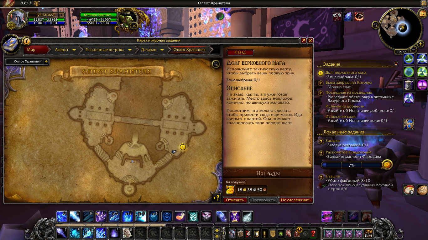 | Description | Ник Johnstrapon Баг с квестом https://ru.wowhead.com/quest=41141/долг-верховного-мага Когда открываешь тактическую карту, она не активна, нету на ней квестов | ||||