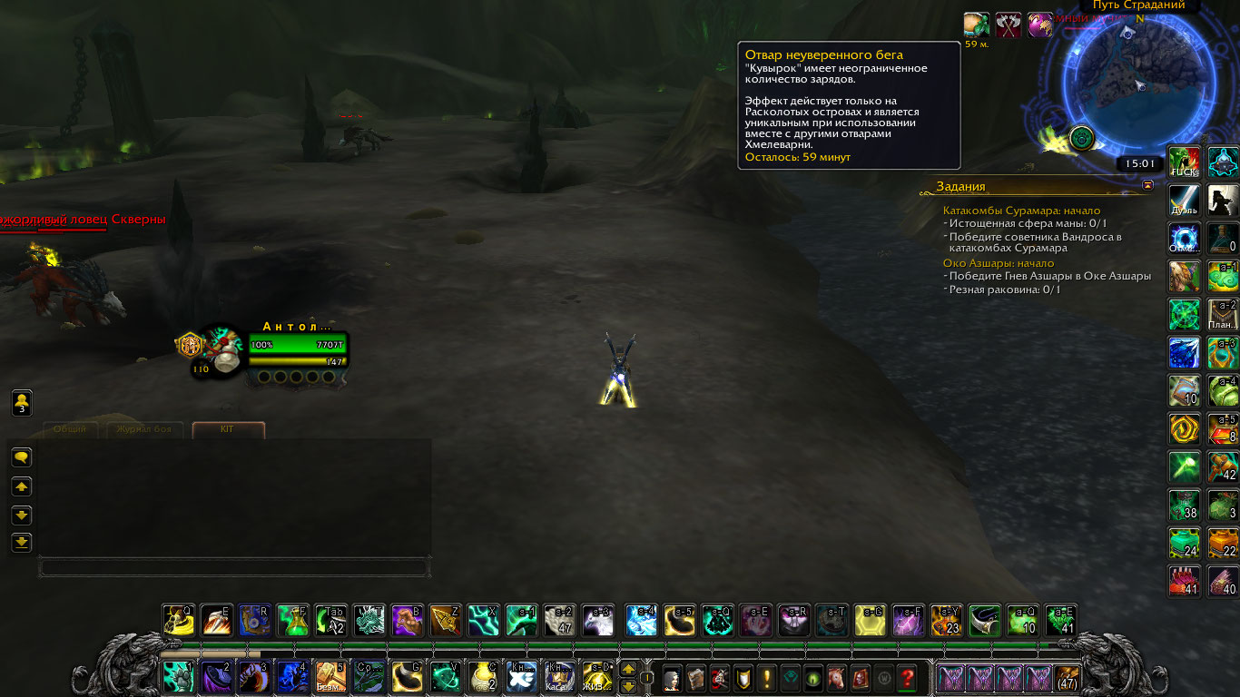 Должен работать 1 отвар одновременно. Сниматься везде кроме расколотых островов. Выход из мира не должен убирать эффект. |