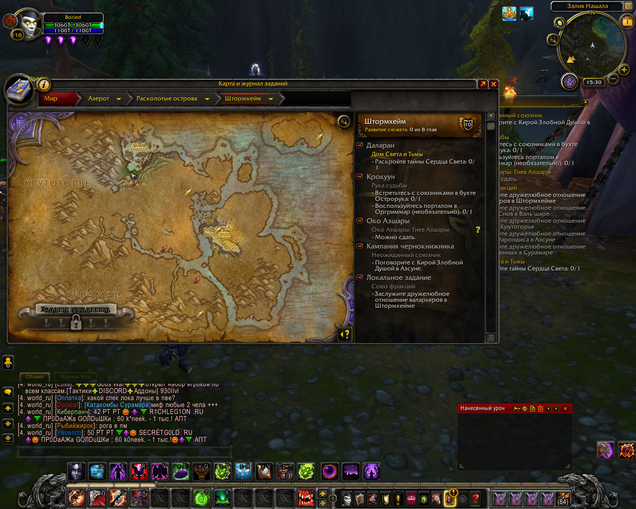 Здравствуйте! Слетайте в Оргриммар, на корабль Проверьте наличие квестов https://ru.wowhead.com/quest=38307 https://ru.wowhead.com/quest=39698 |