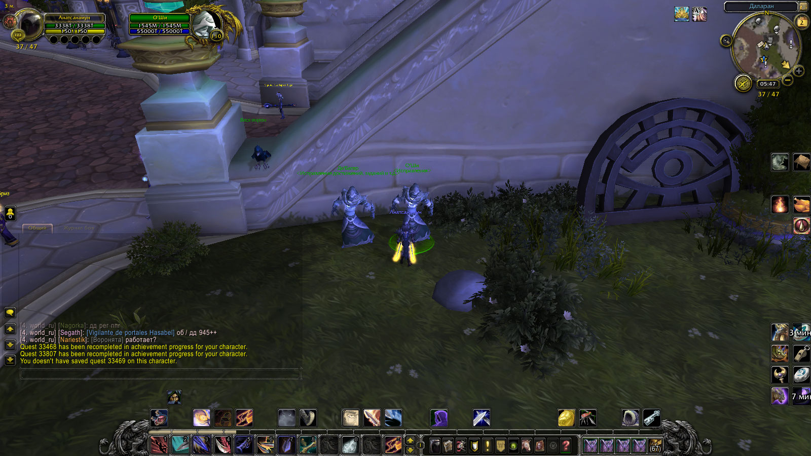 | Description | Выполнялись два первых квеста в цепочке гарнизона(https://ru.wowhead.com/quest=33468/%D1%81%D0%BF%D0%B0%D1%81%D0%B5%D0%BD%D0%B8%D0%B5-%D0%B2%D0%BE%D0%BB%D1%87%D1%8C%D0%B5%D0%B3%D0%BE-%D0%B4%D0%BE%D0%BC%D0%B0 и https://ru.wowhead.com/quest=33807/%D0%BE%D1%81%D0%B2%D0%BE%D0%B1%D0%BE%D0%B4%D0%B8-%D0%BD%D0%B0%D1%88%D0%B8%D1%85-%D0%B1%D1%80%D0%B0%D1%82%D1%8C%D0%B5%D0%B2-%D0%B8-%D1%81%D0%B5%D1%81%D1%82%D0%B5%D1%80) .Вроде все нормально шло выполнив их появилась сам НПС-Дрека и рванул к месту где ОНА должна давать следующий квест в цепочке-https://ru.wowhead.com/quest=33469/%D0%BF%D1%80%D0%B5%D0%B4%D1%81%D0%BA%D0%B0%D0%B7%D0%B0%D1%82%D0%B5%D0%BB%D1%8C и провалилась в текстуры.С тех пор ее не видно и не слышно прошло уже 2 дня -думал утренний рестарт поможет вернуть ее на место.Ничего подобного НПС так и не появился.Что теперь делать? Да проверил квесты у ДЭБАГЕРА в Даларане вроде написал что выполнены.Ну что смог заскринил там же видно что квест могу получить но нет НПС. | ||||