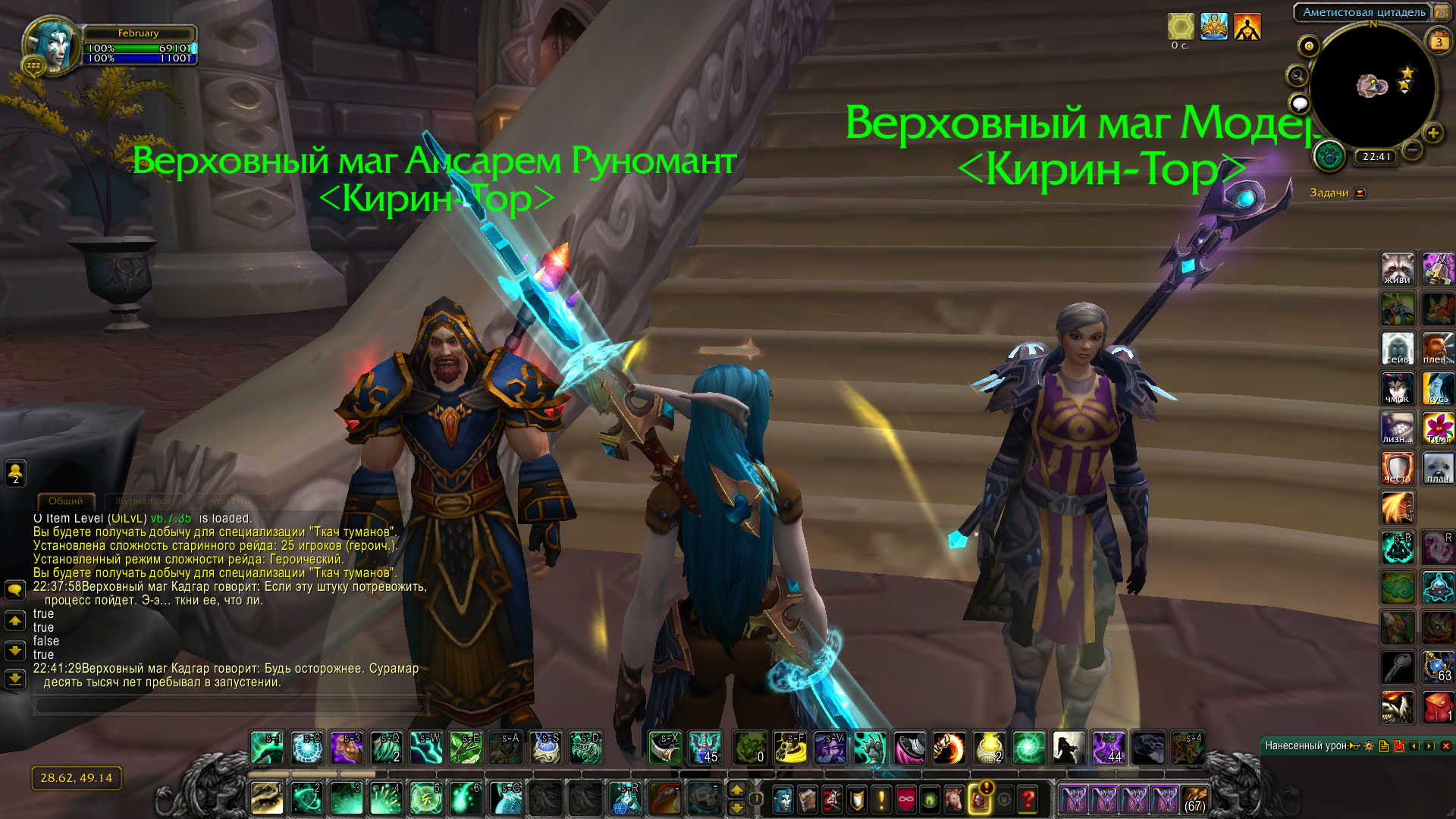 | Steps To Reproduce | Внос припасов для строительства башни магов, разрушителя пустоты и ставки командования я частенько и исправно совершала, но появления квестов это, опять-таки, не спровоцировало Пробовала по макросу проверять, какие из квестов выполнены (как и указано ранее, выполнено только https://ru.wowhead.com/quest=46035/последнее-восстание) Пробовала также исправить квесты у О'Ши в Даларане, но два других квеста он не ребутнул, тк у меня нет прогресса в них, а исправление первого ни к чему не привело, все так же нет квестов на другие спеки | ||||
