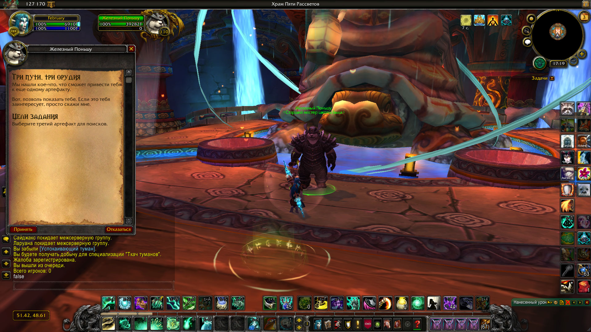 Баг с квестом Подтверждаю. На счет оплота воспользуйтесь этим аддоном. По Аддону можно глянуть все квесты оплота. Если не сможете разобраться с Аддоном, можно воспользоваться списком http://forum.uwow.biz/topic/278122-tcepochki-klassovye-oploty/ Используйте команду .q s Id что бы найти какие квесты сделаны Пример .q s 42762 |