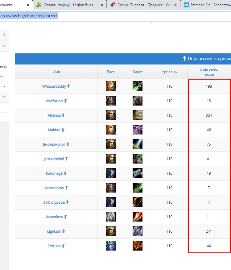 | Description | Добрый день. На вашем сервере за 1000 часов наигранных на аккаунте должен выдаваться "Скакун Тираэля" (https://ru.wowhead.com/item=76755/%D1%81%D0%BA%D0%B0%D0%BA%D1%83%D0%BD-%D1%82%D0%B8%D1%80%D0%B0%D1%8D%D0%BB%D1%8F) На аккаунте уже (198+18+334+46+75+41+19+7+4+11+241+44=1038) ( http://egammi.net/image/StfC ). С аккаунтом что-то не так? Или с вашей стороны проблемы? Спасибо за внимание :) | ||||
