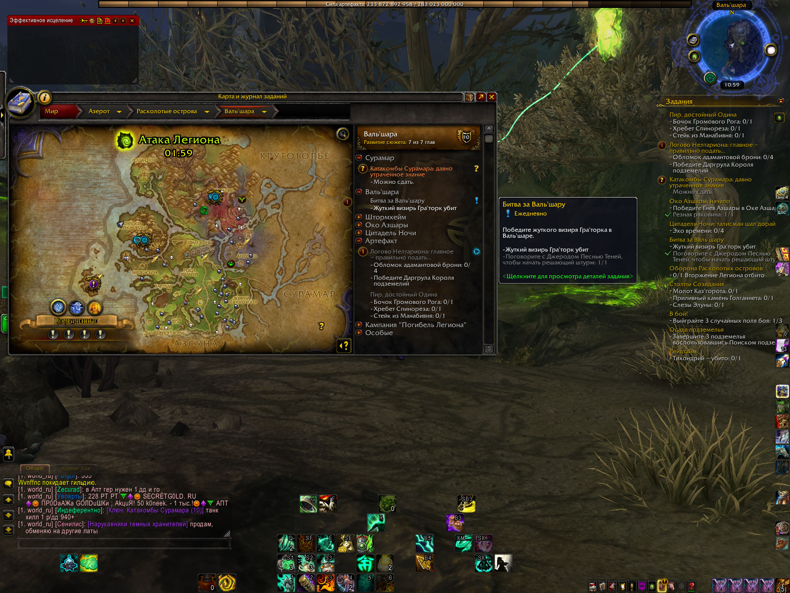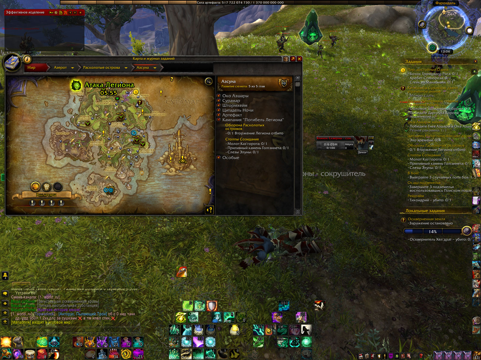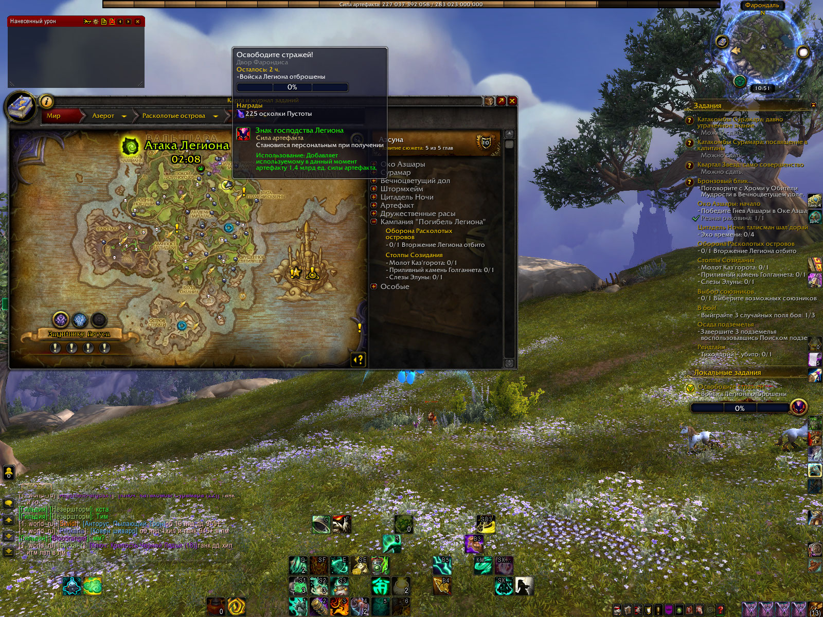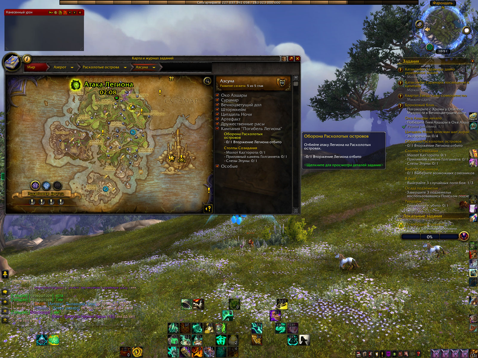 Да и вообще, те ли действия я совершаю, для выполнения этого квеста? Кто знает, какие еще действия Вы выполняете. Напишу, как я выполнял это задание когда то, а Вы сравните с тем, что происходит у Вас. Взято у Маев задание отбить атаку. Дождался появления на глобальной карте островов зеленой отметки Атака Легиона (осталось х часов) Случалось такое выполнять в разных локациях, рассмотрим вариант для Азсуны. Итак, появилась атака, прилетаю в локацию - при пересечении границы локации мне автоматически выдалось задание Атака на Азсуну - выполнить 4 локальных задания атаки Легиона. И счетчик выполненных заданий 0/4 Полетел по локалкам - на карте они отображаются зелеными значками, в отличие от обычных локалок. Как правило локалок шесть - две с боссами (типа элитные локалки) и четыре обычных. В общем, выполнил 4 локалки - засчиталось задание Аткак на Азсуну. Сделал еще пару локалок, чтобы получить осколки и прочие награды, полетел сдавать задание. На карте отобразилось положение принца Фарондис, которому сдавать задание , недалеко от Логова Шекла. Прилетел, сдал задание и получил задание второй фазы атаки - побить мобов , убить босса, собрать чтото там. цепочка из нескольких задач. Выполнил.Сдавать Фарондису, который переместился выше по склону. Сдал - и получил еще одно задание - сесть на птыца и атаковать мобов на башне и вокруг нее с птыца. Полетел, сбросил бомбу, убил мобов - птыц отвез сдавать этот квест к Фарондису, который стоит на севере локации. Недалеко от места где почти всегда есть локалка на рарника Аркавелл. И рядом с Фарондисом всегда на этой точке стоит элитный рарник - такой нежданчик вот. Спрыгнул сптыца и сразу попал под атаку моба. Сдал квест Фарондису и после этого появилась возможность взять квест третьей фазы атаки и встать в очередь на финальный сценарий атаки. Финальный сценарий требует труппы из трех человек, можно встать в очередь как в обычное лфг, а можно собрать пати из трех человек и лидер пати сразу после регистрации у Фарондиса запускает финальный сценарий. Поскольку выполнение идет в инстансе на трех человек, все возможности сиситемы поиска группы доступны - можно глазом входить/выходить из инста, можно добирать людей при необходимости, как в обычном рандом инсте. Несколько этапов выполнения финального сценария, бой на корабле с финальным боссом - и как только убийство финального босса будет засчитано - можно всем покинуть подземелье и сдать финальный квест Фарондису. Одновременно с этим засчитается выполнение квеста https://ru.wowhead.com/quest=46247/%D0%BE%D0%B1%D0%BE%D1%80%D0%BE%D0%BD%D0%B0-%D1%80%D0%B0%D1%81%D0%BA%D0%BE%D0%BB%D0%BE%D1%82%D1%8B%D1%85-%D0%BE%D1%81%D1%82%D1%80%D0%BE%D0%B2%D0%BE%D0%B2 , который также можно будет сдать у Маев. Все. |