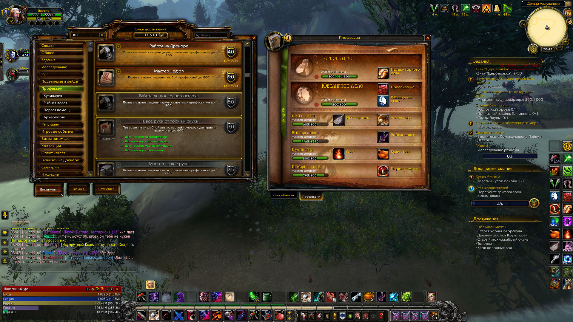 Да ..проблемы не только у него....http://egammi.net/image/Sx4X Делал перезачеты...все по отдельности зачитывает выдает достижения но вместе как то не срастется....да и только щас при скрине заметил рыбную ловлю 801/800...чем не баг. с ачивами профессий бяда....без них проблем много....вот и парятся в долгом ящике ....снятие шкур.... |