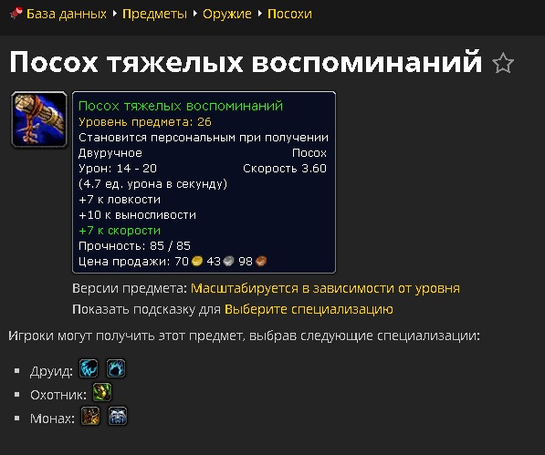| Description | Здравствуйте! В процессе выполнения линейки заметил несостыковку с полученной наградой и наградой, которая должна выдаваться по вовхеду у одного из квестов в Зимних ключах. По итогу выполненного задания есть выбор на доп. предмет за выполнение. Прошу проверить в чем заключается проблема и поправить, если это необходимо. Вдруг что-то неправильно разобрал, прошу хоть как-нибудь пояснить. Уверен, вы поможите. Спасибо заранее :3 Квест: https://ru.wowhead.com/quest=28519/%D0%B1%D0%BE%D0%BB%D1%8C-%D1%8D%D0%BB%D1%8C%D1%84%D0%BE%D0%B2-%D0%BA%D1%80%D0%BE%D0%B2%D0%B8 Награда полученная: https://ru.wowhead.com/item=67211/%D1%81%D1%84%D0%B5%D1%80%D0%B0-%D0%BA%D0%B5%D0%BB%D1%82%D0%B5%D1%80%D0%B8%D0%BB%D0%B0?bonus=3631 Награда желаемая: https://ru.wowhead.com/item=157021/%D0%BF%D0%BE%D1%81%D0%BE%D1%85-%D1%82%D1%8F%D0%B6%D0%B5%D0%BB%D1%8B%D1%85-%D0%B2%D0%BE%D1%81%D0%BF%D0%BE%D0%BC%D0%B8%D0%BD%D0%B0%D0%BD%D0%B8%D0%B9?bonus=3631 | ||||