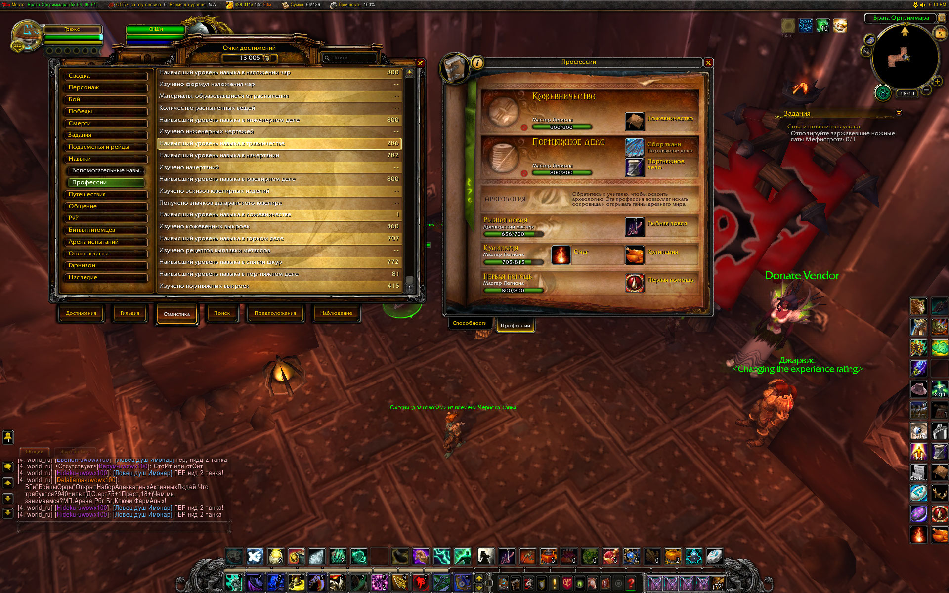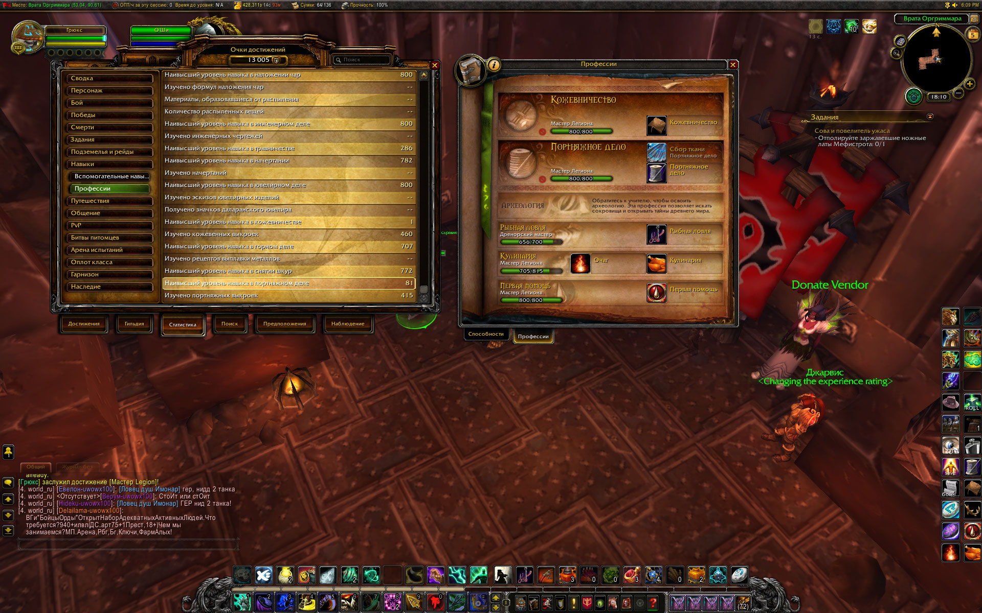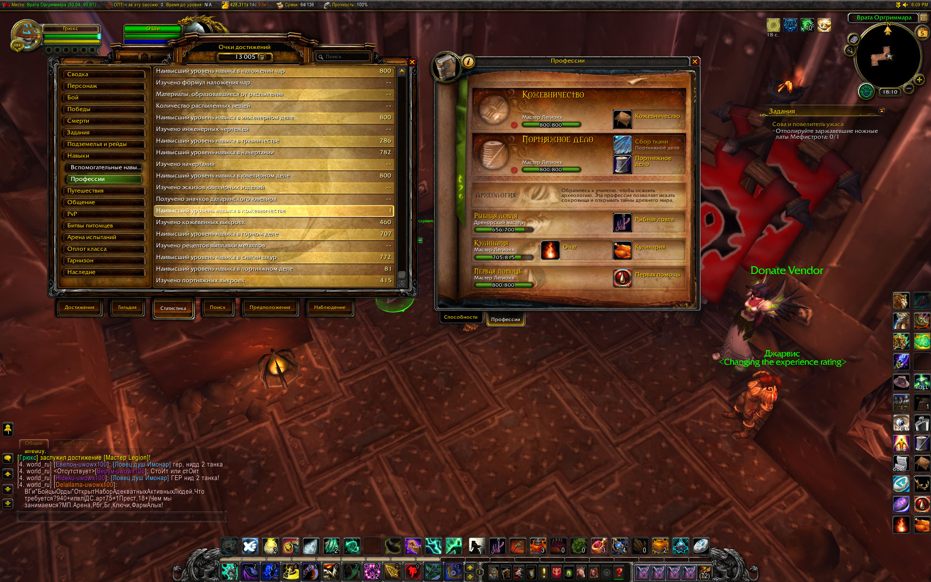 | Description | По мотивам http://tracker.legionbugs.com/view.php?id=12942 достижение https://ru.wowhead.com/achievement=9087/%D0%B4%D1%80%D0%B5%D0%BD%D0%BE%D1%80%D1%81%D0%BA%D0%B8%D0%B9-%D0%BC%D0%B0%D1%81%D1%82%D0%B5%D1%80-%D0%BD%D0%B0-%D0%B2%D1%81%D0%B5-%D1%80%D1%83%D0%BA%D0%B8 не засчитываются критерии для кожевничества, травничества и портняжного дела. При том, что эти профессии изучены до капа , в статистике достижений указывается как максимальное значение навыка число, которое берется с твинка, на котором после получения ачивки за кап 800 в профе, снова была взята эта же профессия. Цифры навыка показываются в статистике и после того, как профа была удалена на твинке, либо сам твинк был удален и создан другой персонаж. Перезачет у О`Ши достижений за 1 и 2 профессии с капом Легиона (800) происходит успешно, а попытки перезачесть критерии достижения 9087 и само достижение не приводят к успеху. Пишет, что такого критерия нет. Напишите мне, какие числа надо вводить у дебагера, чтобы перезачесть портняжное дело Дренора и портняжное дело Легиона? Напишите мне, какие числа надо вводить у дебагера, чтобы перезачесть кожевничество Дренора и кожевничество Легиона? Напишите мне, какие числа надо вводить у дебагера, чтобы перезачесть травничество Дренора и травничество Легиона? Скрины прилагаю. | ||||