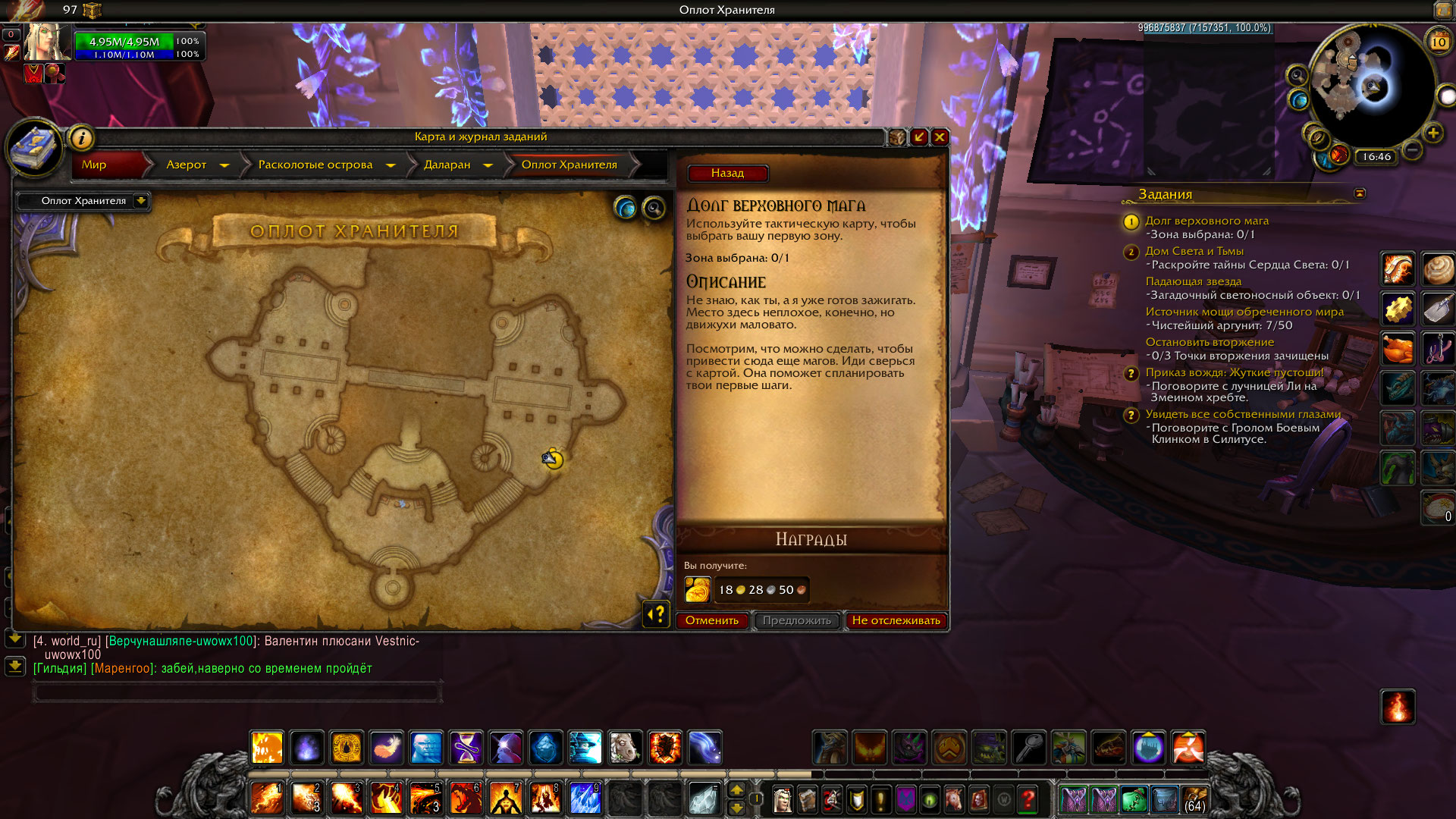 Здравствуйте. Напишите сюда http://forum.uwow.biz/topic/254394-problema-s-artefaktom-i-oplotom-kvesty-dop-taly/ |