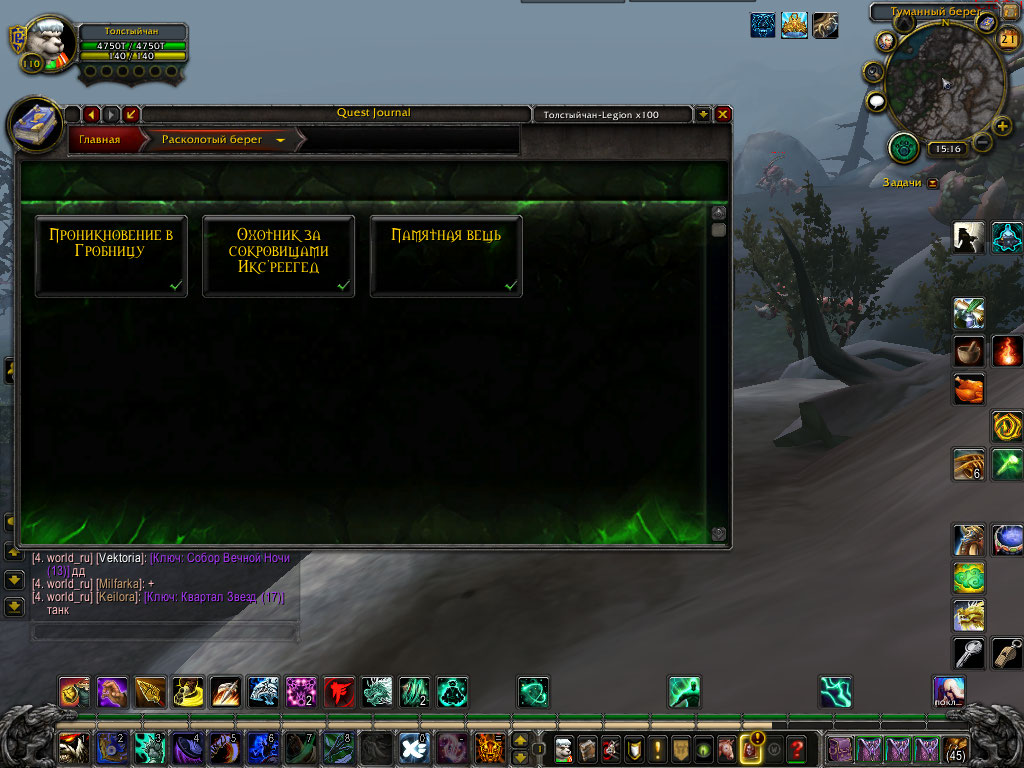 Персонажа переносили с другого сервера? Когда персонаж был создан? Играли на сервере в 7.1-7.2 ? (В то время автокомплит делали некоторых квестов) |