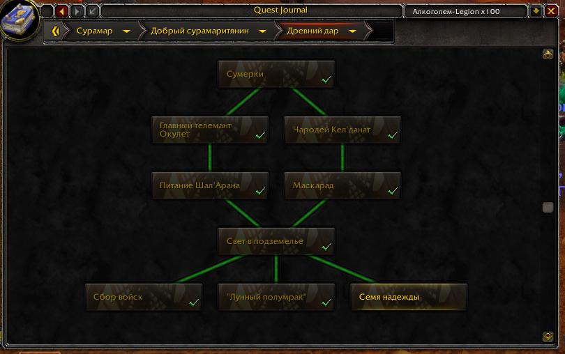 Здравствуйте! Как обстоят дела с цепочкой "Древний дар"? Чтобы проверить, прикладываю аддон |