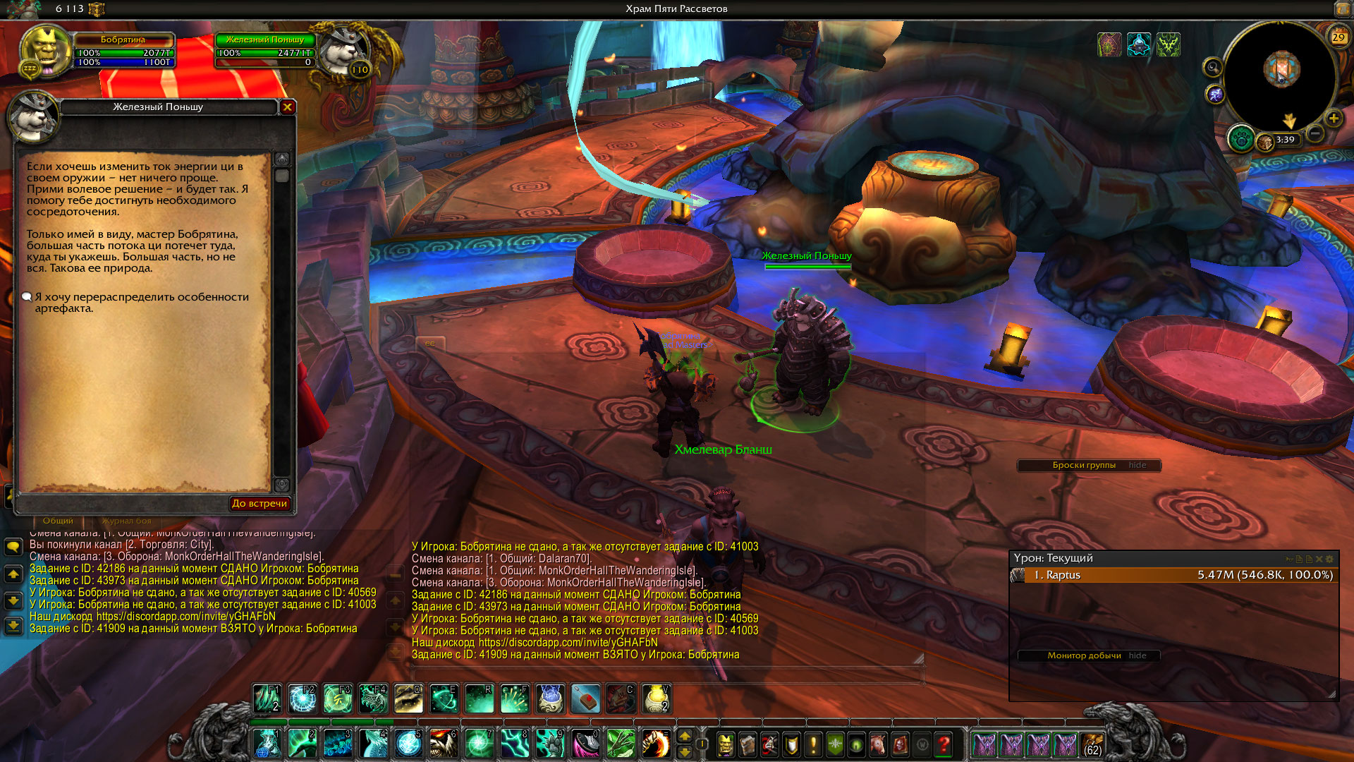 Что нам говорит опыт предков? Что квест 42186 https://ru.wowhead.com/quest=42186 не является квестом на выбор артефакта или квестом из цепочки на получение артефакта. Что квесты 40636 https://ru.wowhead.com/quest=40636 43973 https://ru.wowhead.com/quest=43973 44424 https://ru.wowhead.com/quest=44424 которые выдает Железный Поньшу позволяют выбрать соответственно: первый, второй и третий артефакты для поисков. Не акцентируя внимание на порядке выбора артефактов. Что нам рекомендует опыт предков - полистать соседние темы и установить аддон BtwQuests. Этот аддон покажет состояние цепочек как классовой кампании монаха в целом, так и отдельных цепочек на получение того или иного артефакта. Оплот монаха переделывали. Когда я выполнял на своем монке кампанию оплота, пару раз мне приходилось отменять квест на получение артефакта и брать его еще раз. Участвовали в этом следующие НПС - Ли-ли в нижней части оплота, в таверне, Так-Так во дворе слева от Поньшу и главного здания. А также в тот период по углам стояли неприметные безымянные монахи с надписью над головой "путеводитель по заданиям оплота" ну или как то так. Один из них располагается сбоку от дороги, которая ведет строго вниз из храма (от Поньшу). Посмотрите этих НПС , если надо включите отображение простых заданий на радаре. |