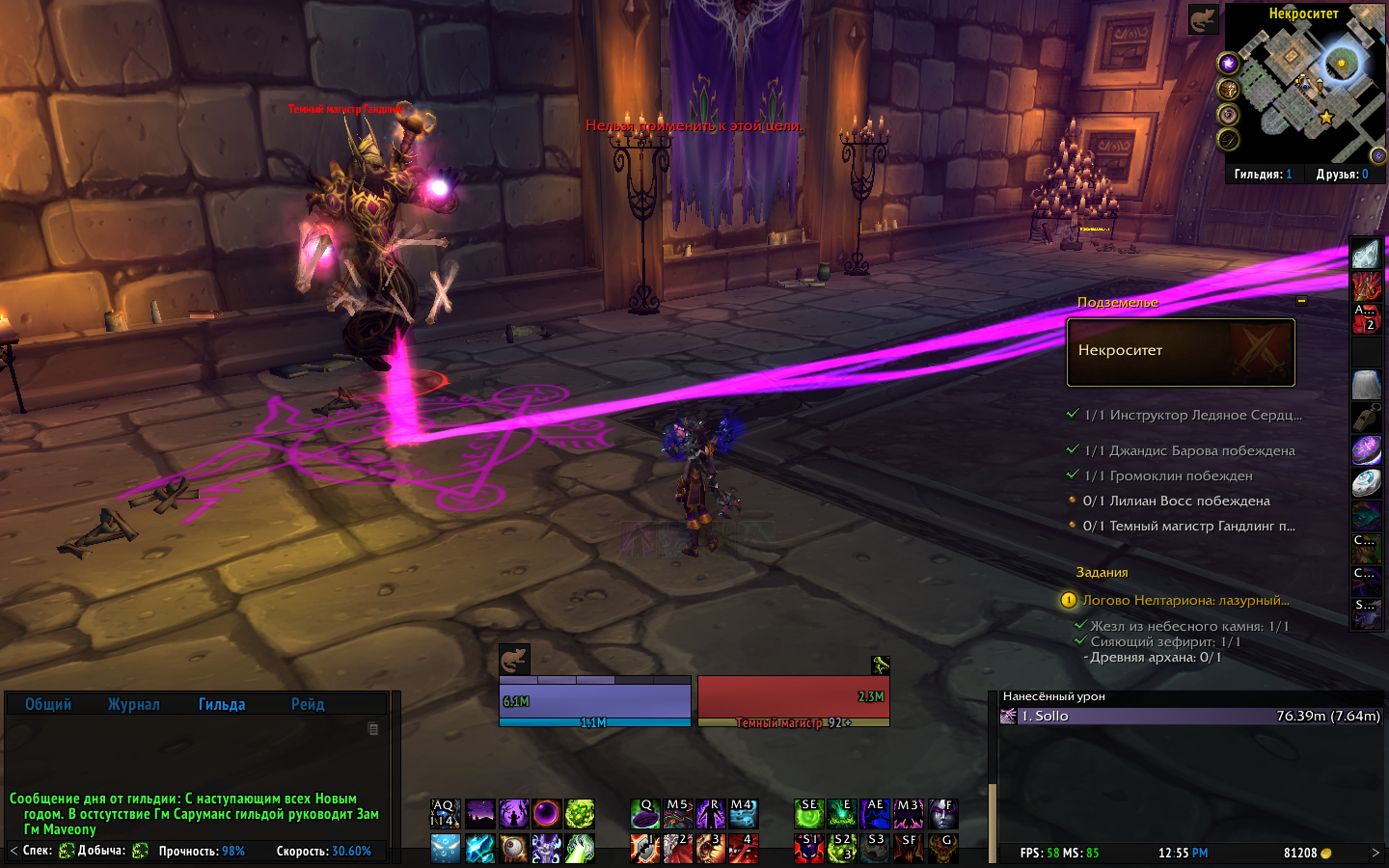 | Description | Логово Нелтариона: лазурный жезл По квесту нужна древняя-архана которая добывается в подземелье https://ru.wowhead.com/scholomance после убийства Джандис Барова. Босс Лилиан не запускается, босс Джандис Баров неуязвим, стальная калитка не открывается, сундук с предметом для квеста находится за стальной калиткой. | ||||
